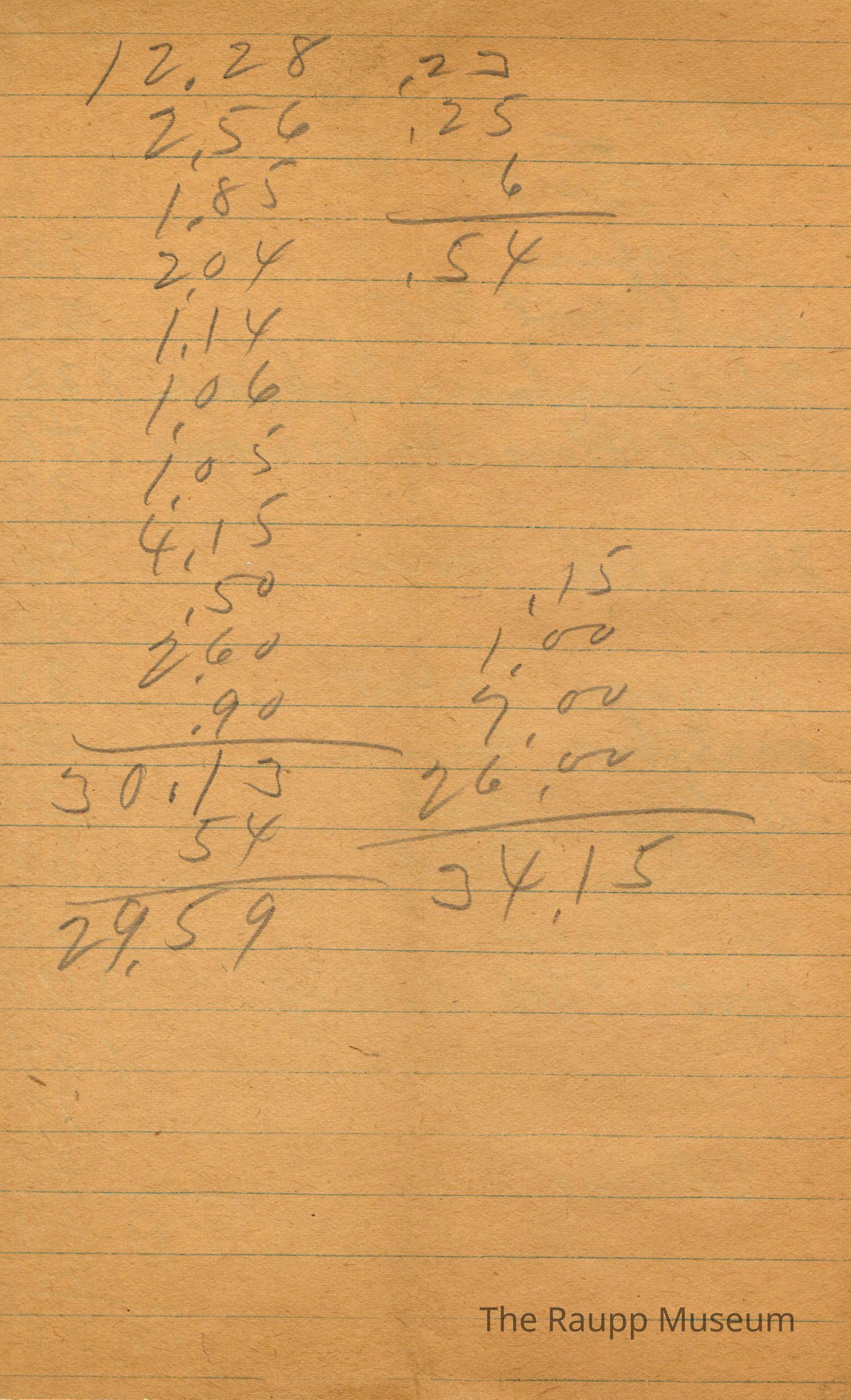One (1) receipt from March 29, 1919. There is some blue printed ink for the lines running across the paper. The person bought Freight for $0.81, lo offer for $0.70, nuts - fort Clil for $0.35, Lidia Pinham's Medicine for $1.25, Liquid Gloss Graham Crackers for $0.96, Shoe Black for $0.20, Gum for $0.40, Cigar tablet for $0.35, Matches gum for $0.50, Collar soap for $0.25, Stocking Flash for $0.60, Tab cigars for $0.65, Hat job (?) for $3.90, and blades for $0.40. Bill total is $12.28.Archive Details