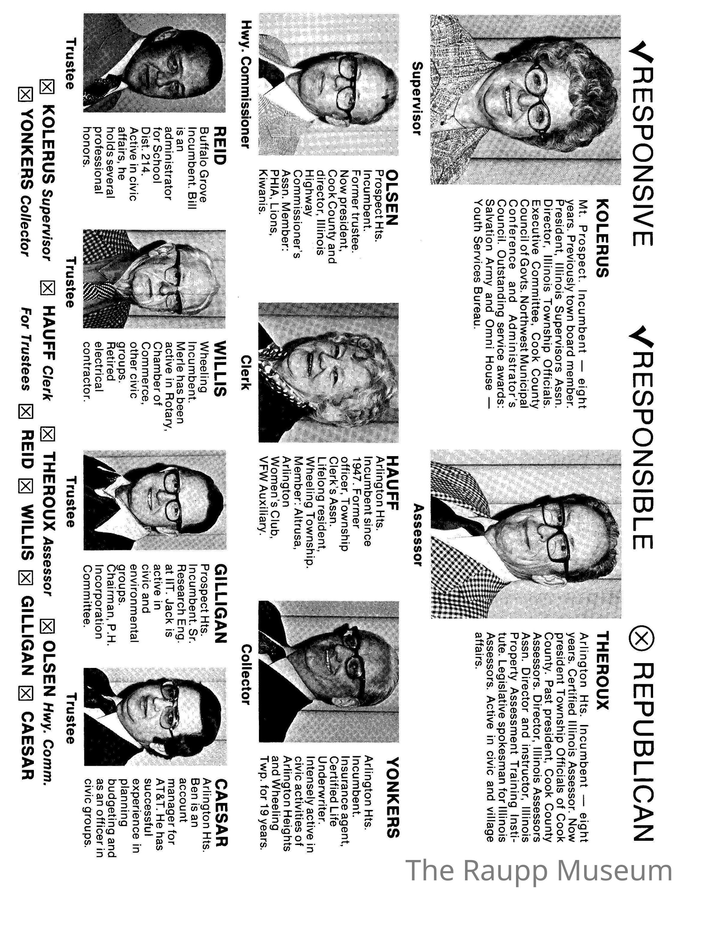 One (1) tri-fol pamphlet for Wheeling Township elections for the Republican candidates, includes photos and short text about each person.Archive Details