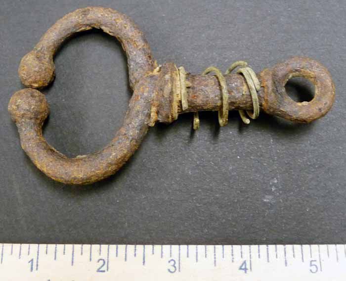 One (1) metal brown animal nose ring. Oval - open end ring with hole for rope attachment. Bent wire on handle.