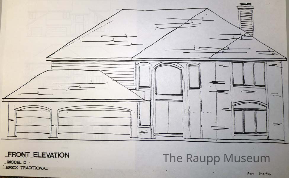 Black and white model D front elevation sketch for the Sterling Creek development.