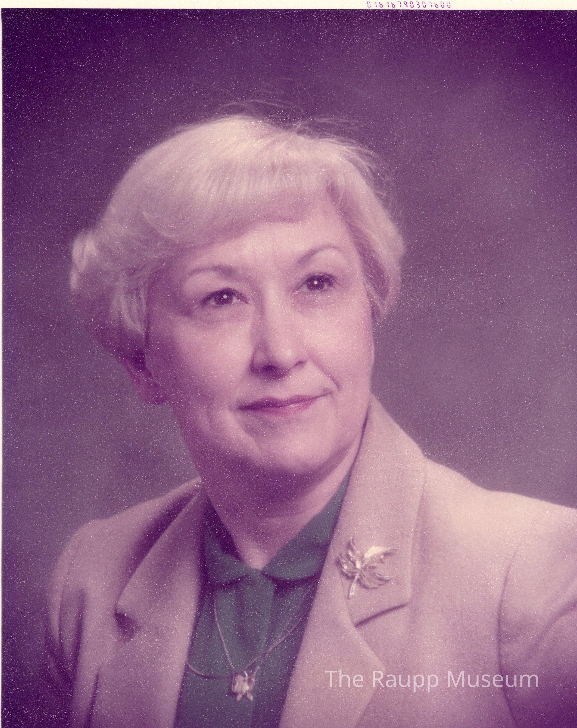 One (1) framed color photograph of Verna L. Clayton, Village President from April 1979 to April 1991. She has on a grey blazer and green undershirt with a silver leaf pin on her left lapel. She has grey short curly hair. The photo is framed in a brown wood frame with a gold plated metal plaque on the glass bottom: "VERNA L. CLAYTON; VILLAGE PRESIDENT; APRIL 1979 - APRIL 1991."