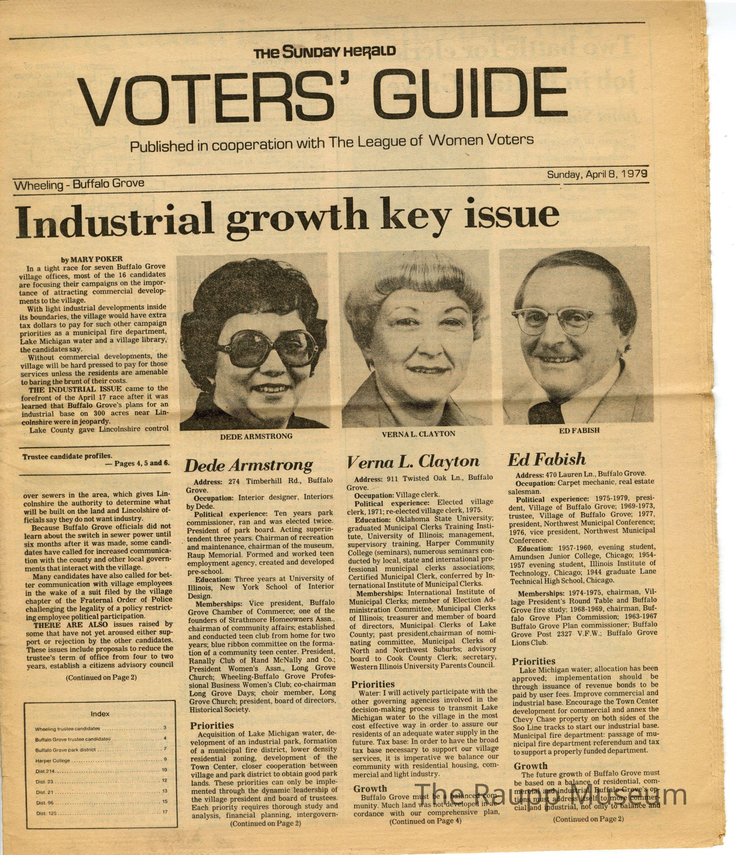 One (1) newspaper insert of a voter's guide for the Sunday Herald, for Wheeling and Bufalo Grove area. Contains 20 printed pages of material, with candidates pictures, priorities in the election, etc.Archive Details