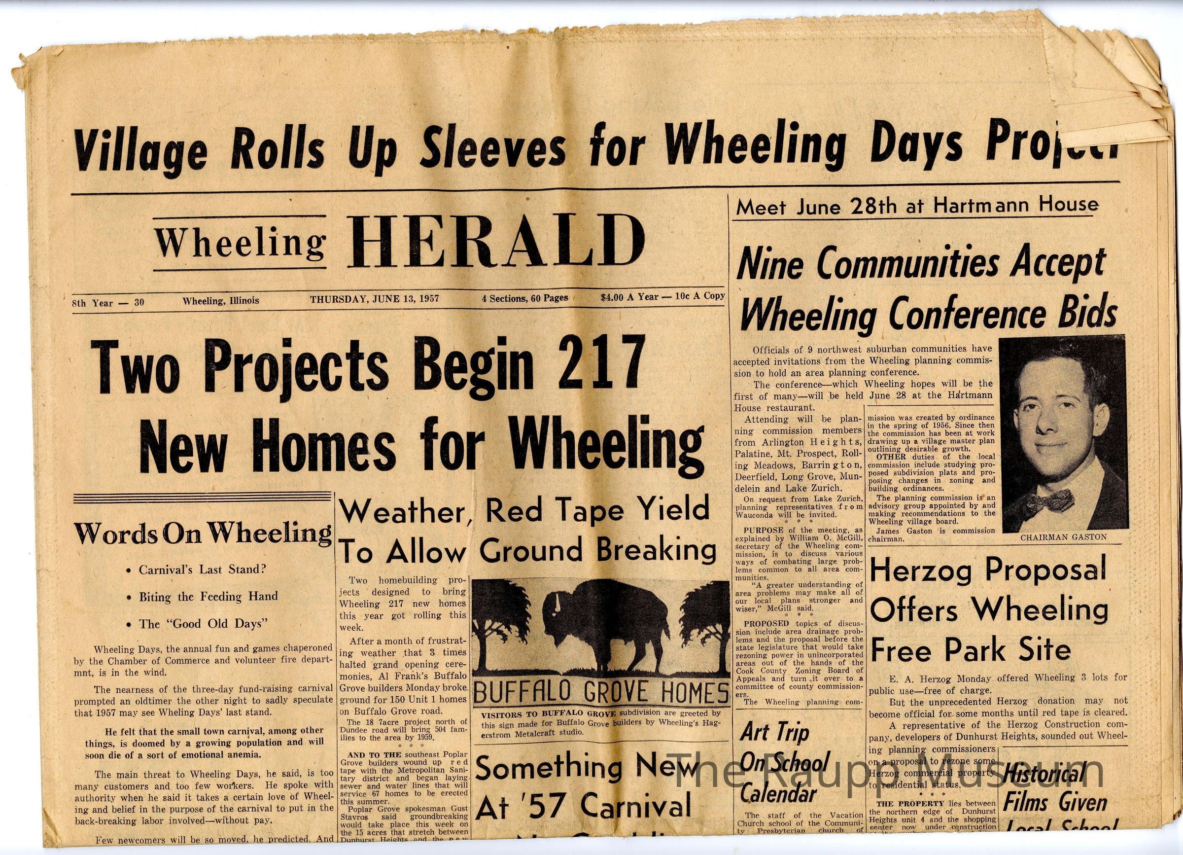 The Wheeling Herald Newspaper 8th Year, Number 30 from 06/30/1957. Headline reads "Two Projects Begin 217 New Homes for Wheeling".Publication Details