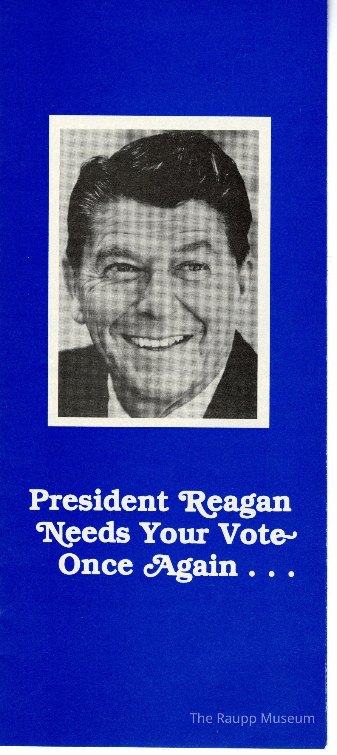One (1) tri-fold blue and white brochure for Republican candidates in Wheeling township 1981. There is a picture of Reagan on the front with other local candidates inside.