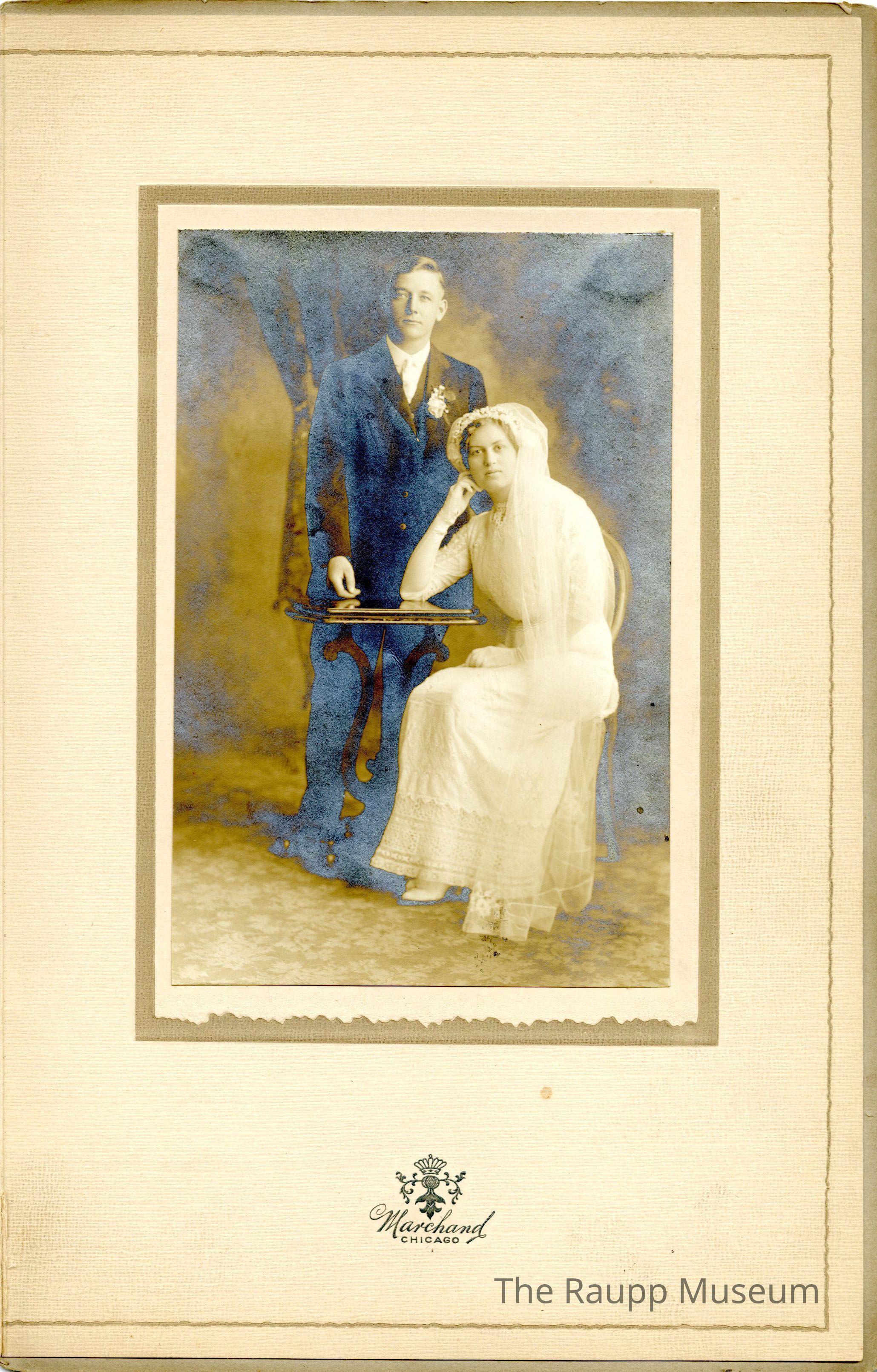 The photo is enclosed in a folded cardboard frame. On the bottom of the photo cardboard is printed: "Marchand, Chicago". On the back is handwritten "William Firnbach and Anna Dietz Wedding picture".Relationships