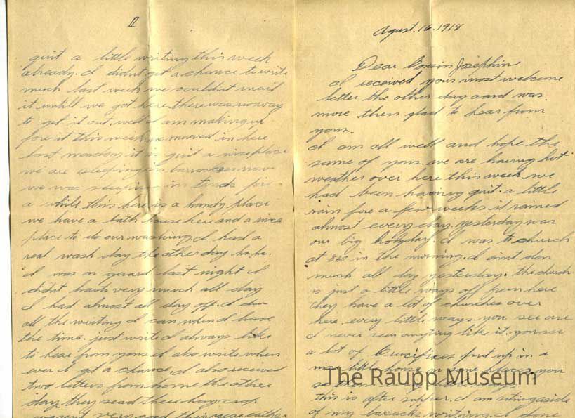 WWI Letter, Aug 16, 1918Entry/Object ID