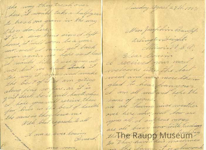 WWI Letter, Aug 27,1918Entry/Object ID
