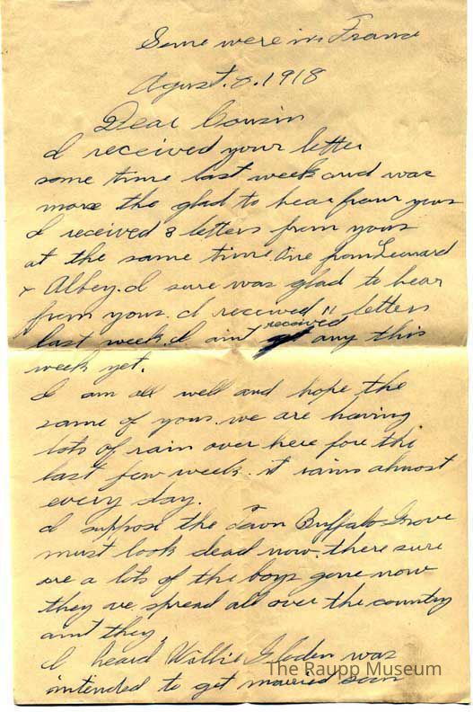 WWI Letter, August 8, 1918Entry/Object ID