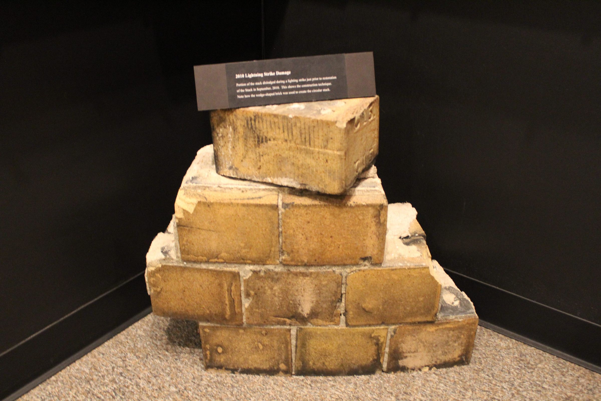 Portion of the stack dislodged during a lighting strike just prior to restoration of the stack in September 2010.