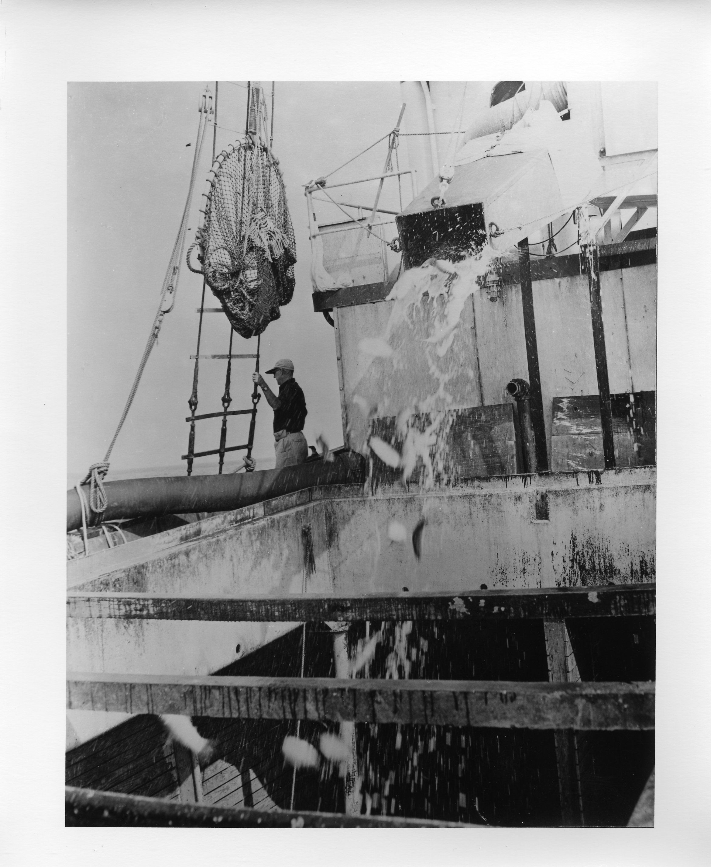 Two crews pumping fish aboard with fish pumps but still old bail net available as backup
