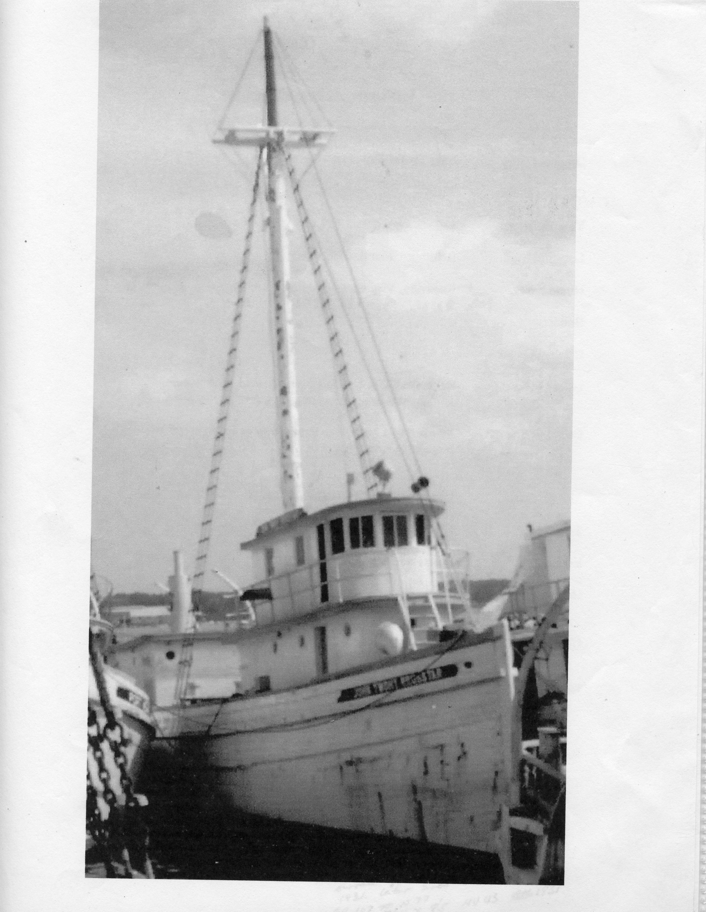It was later owned by Reedville Oil & Guano Co., Reedville, and J Howard Smith, Port Monmouth NJ; donated to the Seamen Training Instutute at Piney Point, MD; ultimately burned.Collection