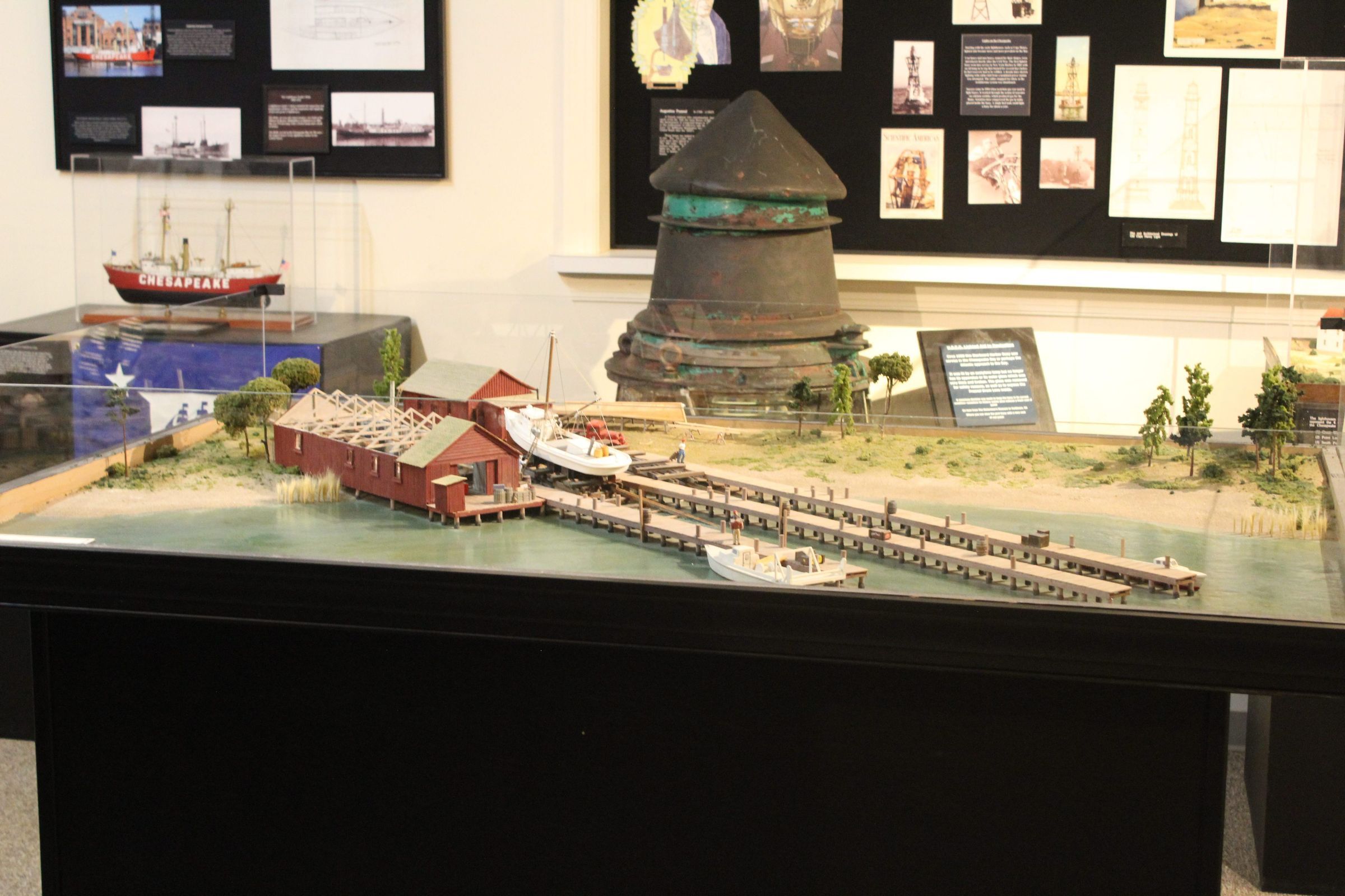 A diorama of Bob Butler's boatyard. Creator(s) are Bill Wright, John Elsen, Will Garvey, Larry Wagner, Larry Mcmurray, Bob Dillion, and Dan Boley.
