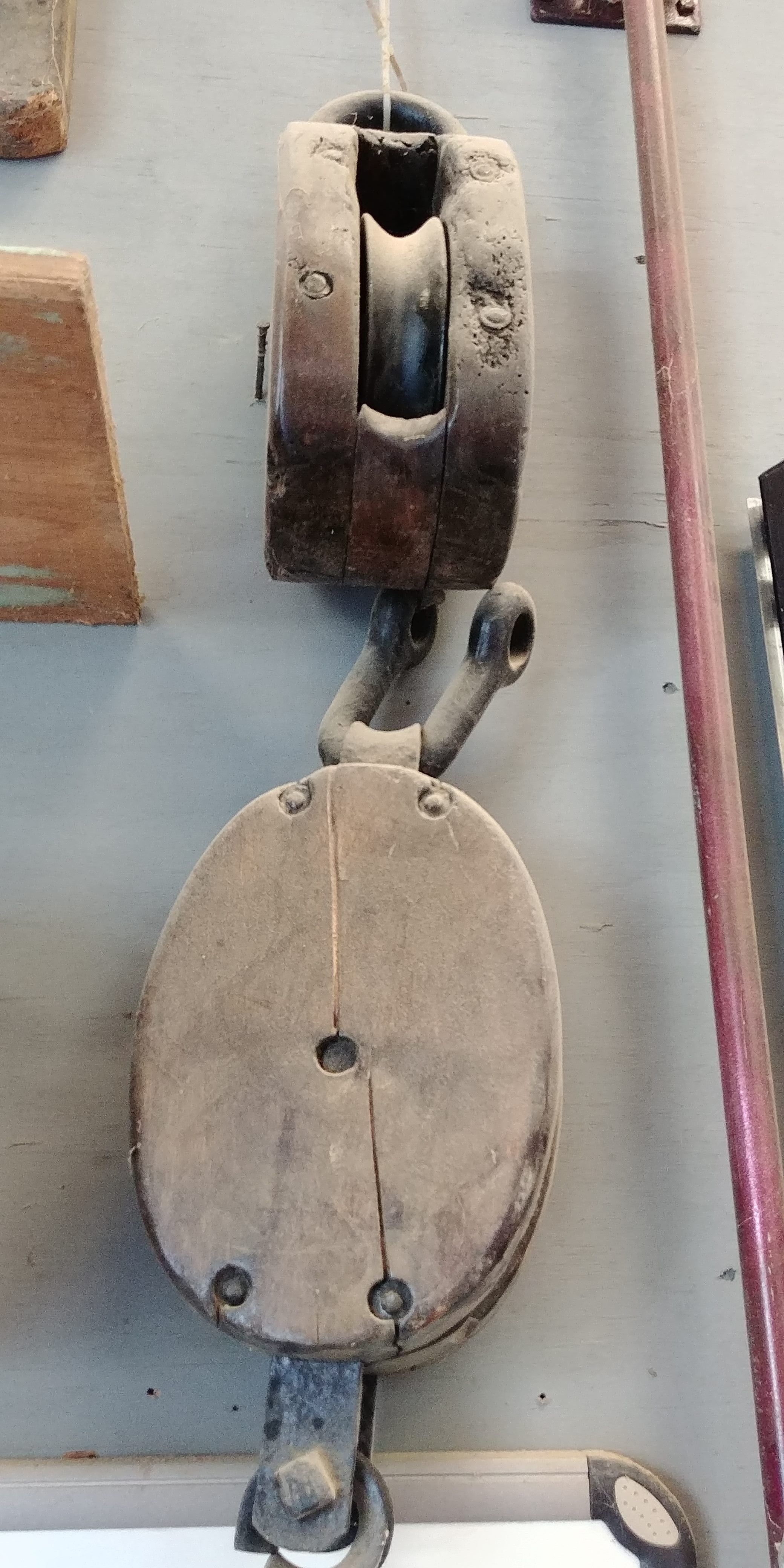 Wooden- Single sheave block with ring-on top in photo