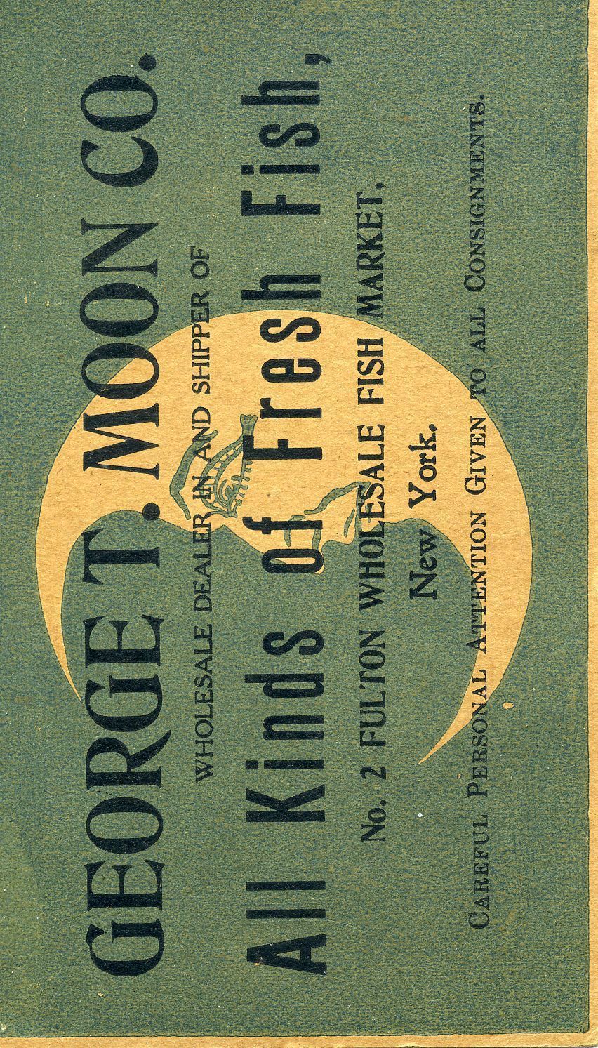 Business / trade card for George T. Moon Co. wholesale dealer and shipper of all kinds of fresh fish. Fulton Fish Market New York