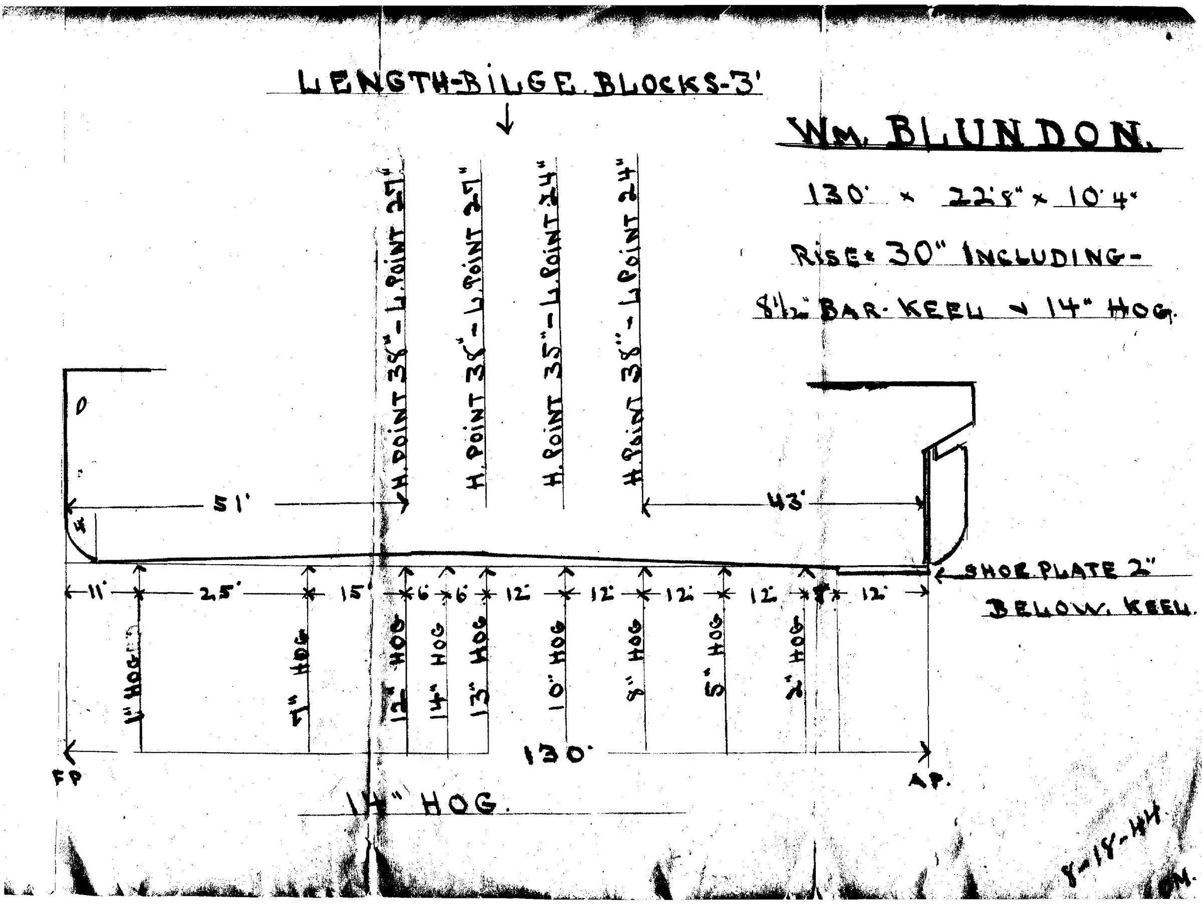 Hand drawn schematic blocking plan for the William Blundon used at the marine railway to support the vessel on the railsCollection
