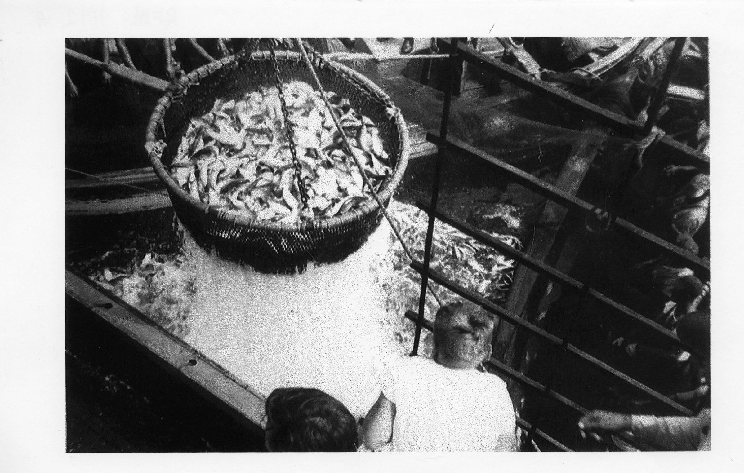 Bailing net full of menhaden for "John O" in Wildwood, NJ c. 1950