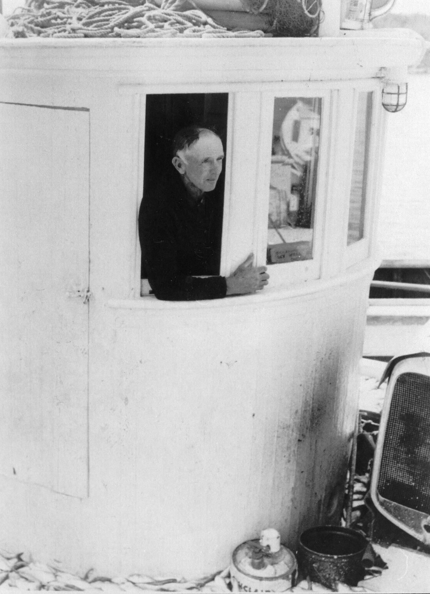 Walter Biddlecomb looking out of window of "The Dudley"