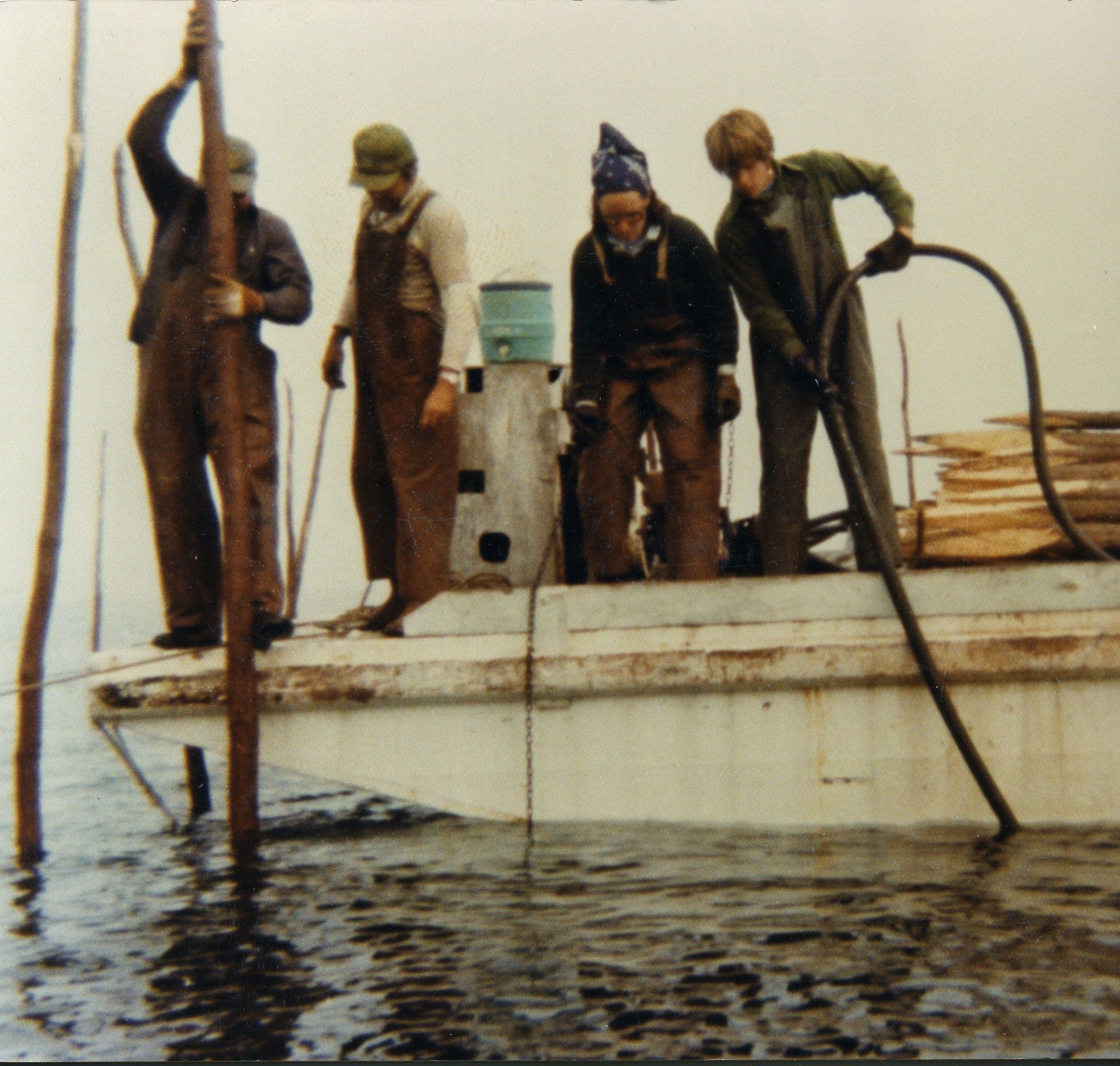 Driving stakes; Fred Biddlecomb, Dudley Biddlecomb, Beth Rogers and Clinton Hanyie