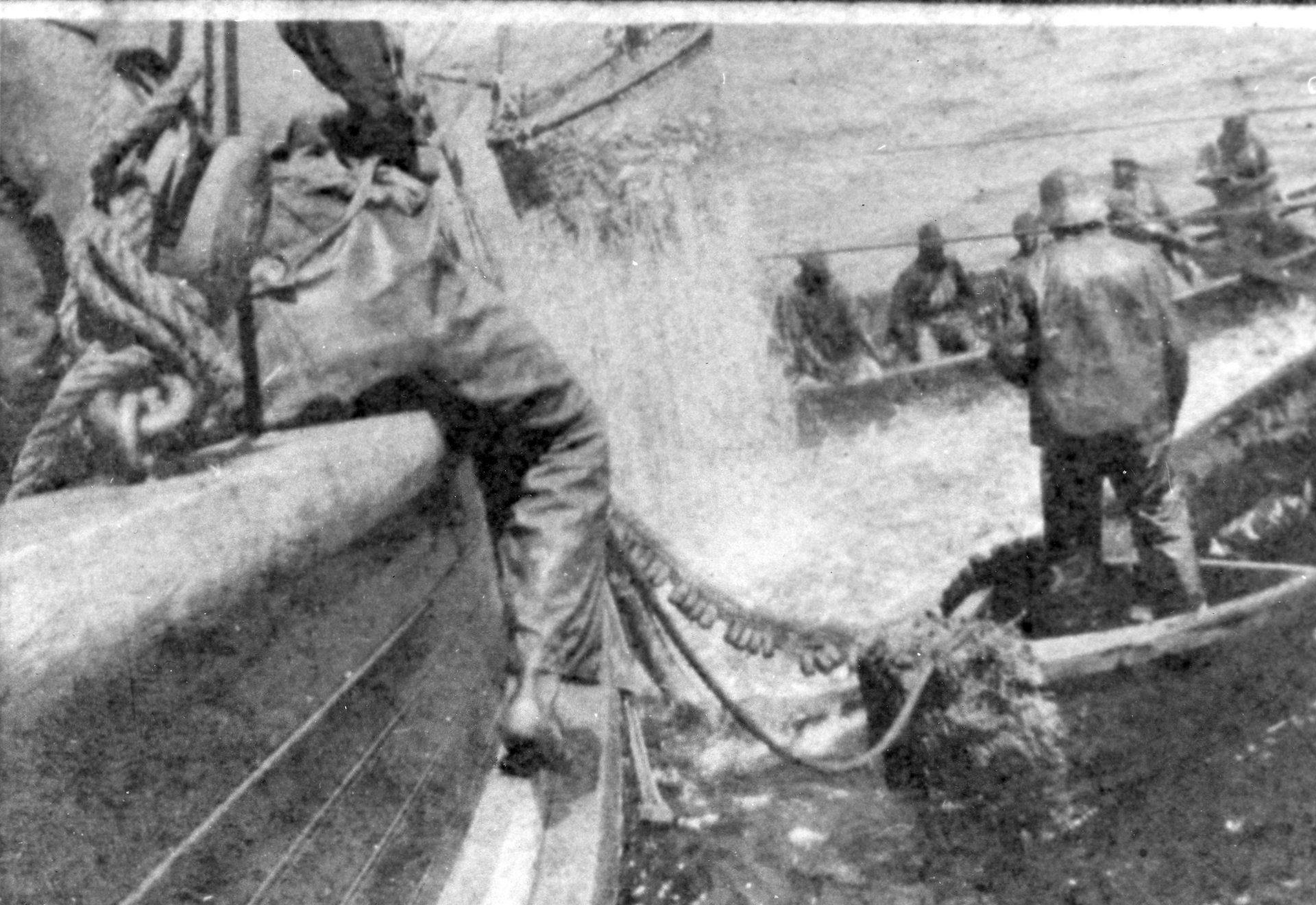 purse boats alongside steamer bailing fish