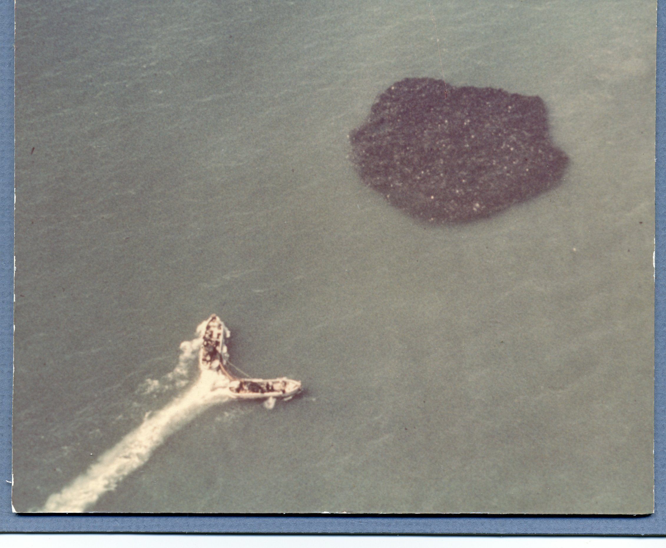 Purse boats preparing to set on a dense school of menhaden