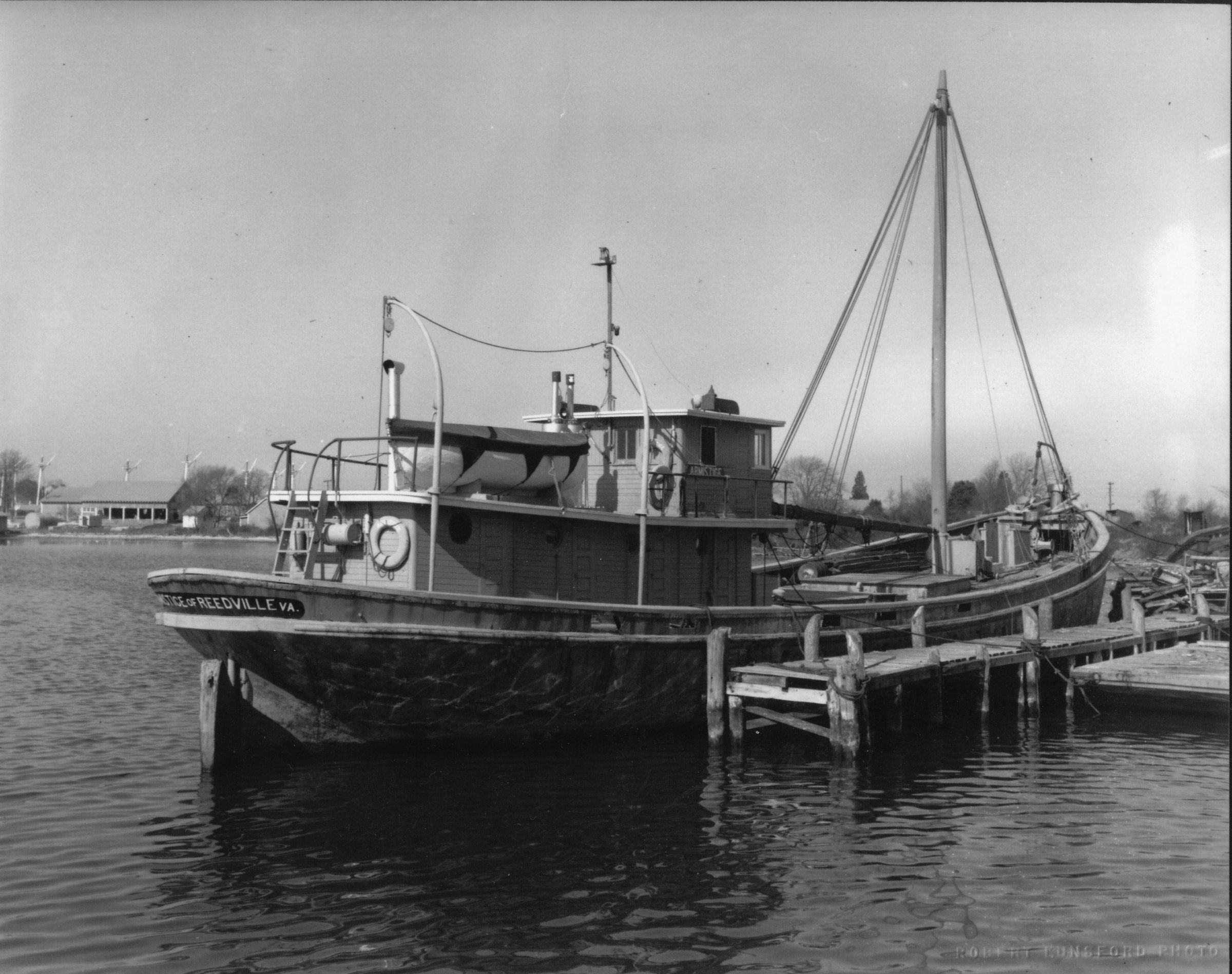 Freight boat used to transport fish oil and fish meal from the factory to Baltimore and Norfolk. Former USCG supply boat wooden clad over iron hull. MV Armistice.Collection