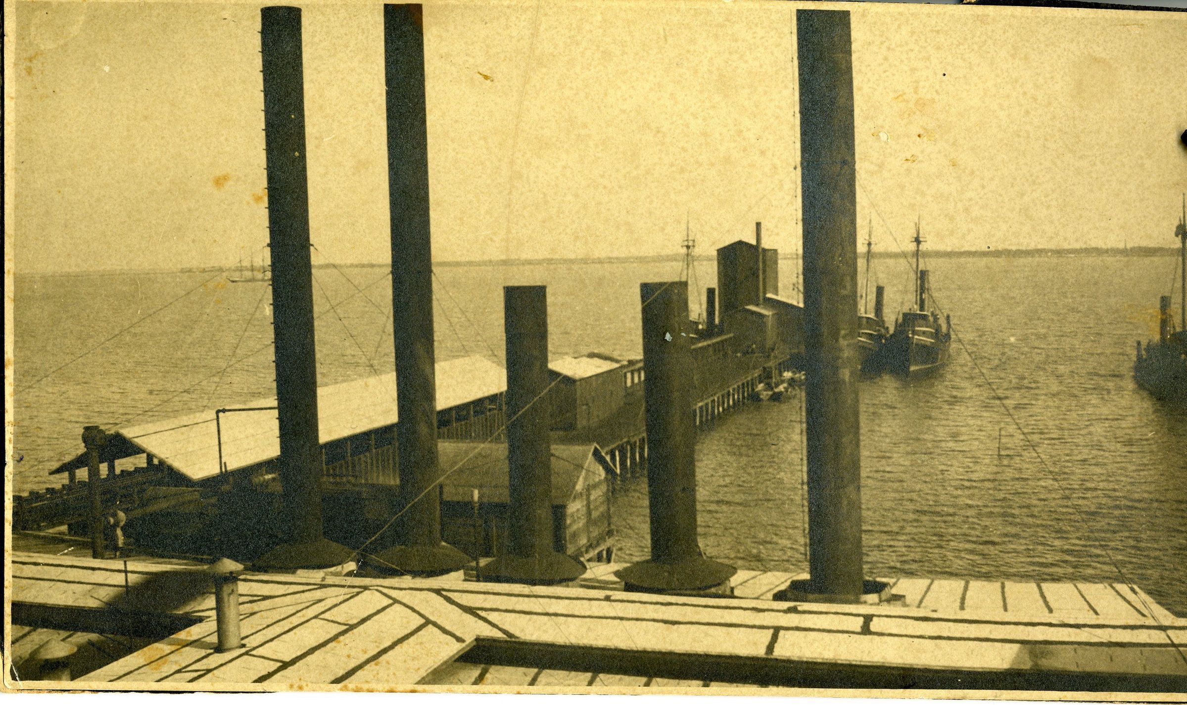 Seaboard Oil and Guano fish factory at Chincoteage VA . Piers taken from top of factory. Taken by W. Harold Haynie, Jr. ca. 1923. Factory burned in 1934.Collection