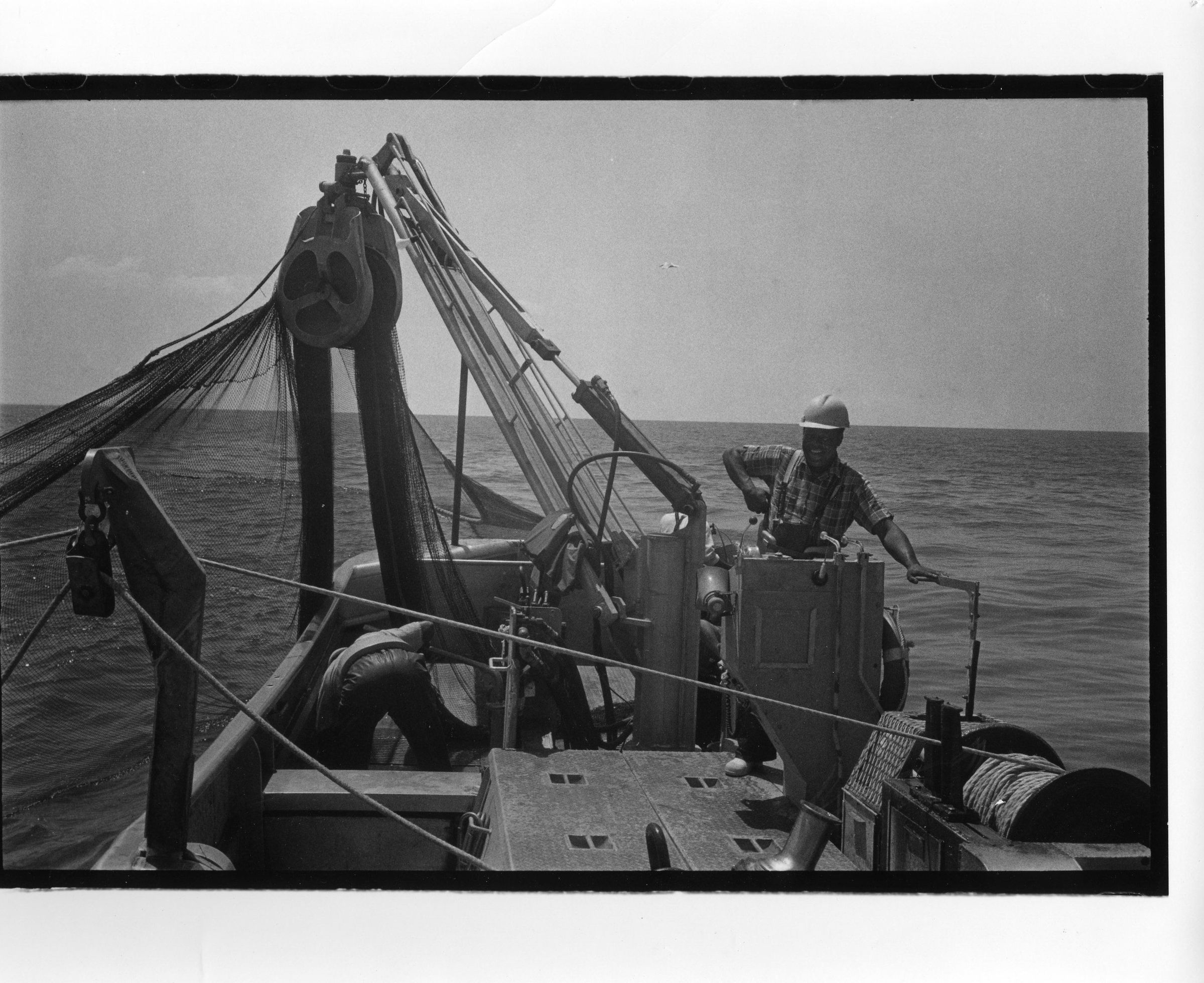 Mate (?) pursing the net and beginning to retrieve the webbing