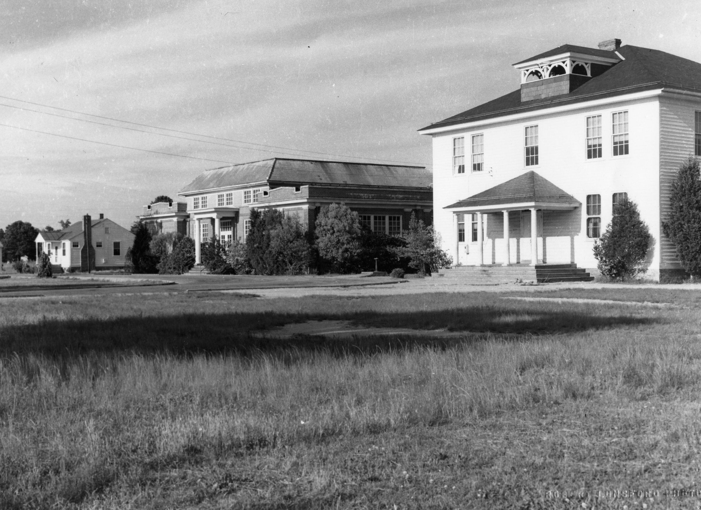 Reedville schools including Elementary school (white frame on right) which was rebuilt after original school burned. New high school and home ec building c. 1940Collection