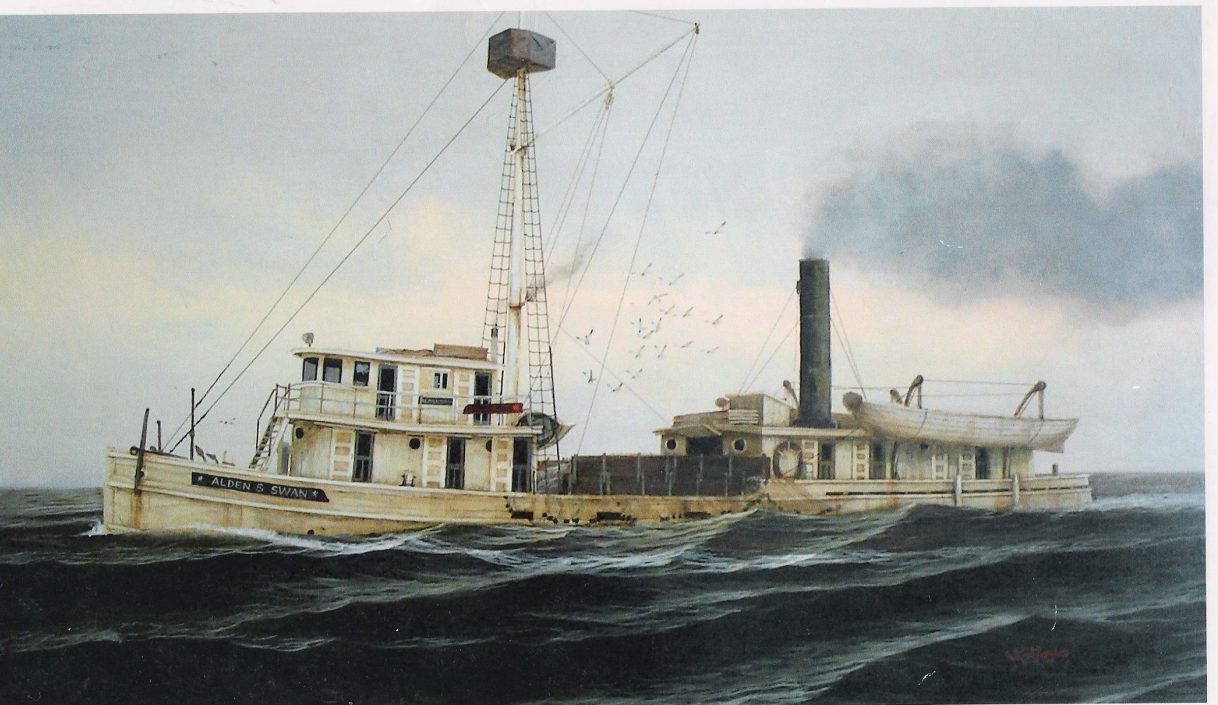 Alden S. Swann, deeply loaded with the boards up
