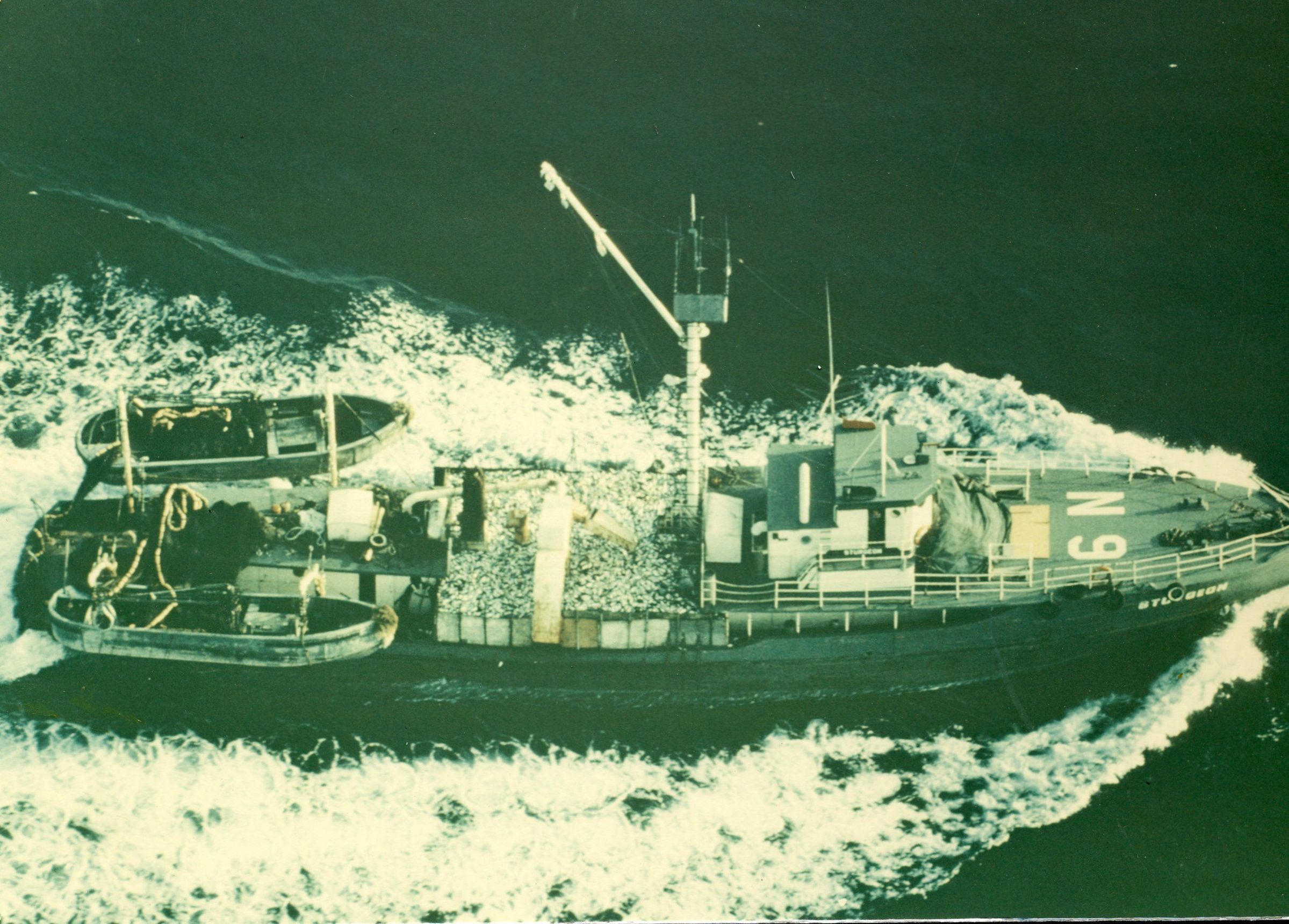 Fishing vessel Sturgeon at sea with deck load of fish