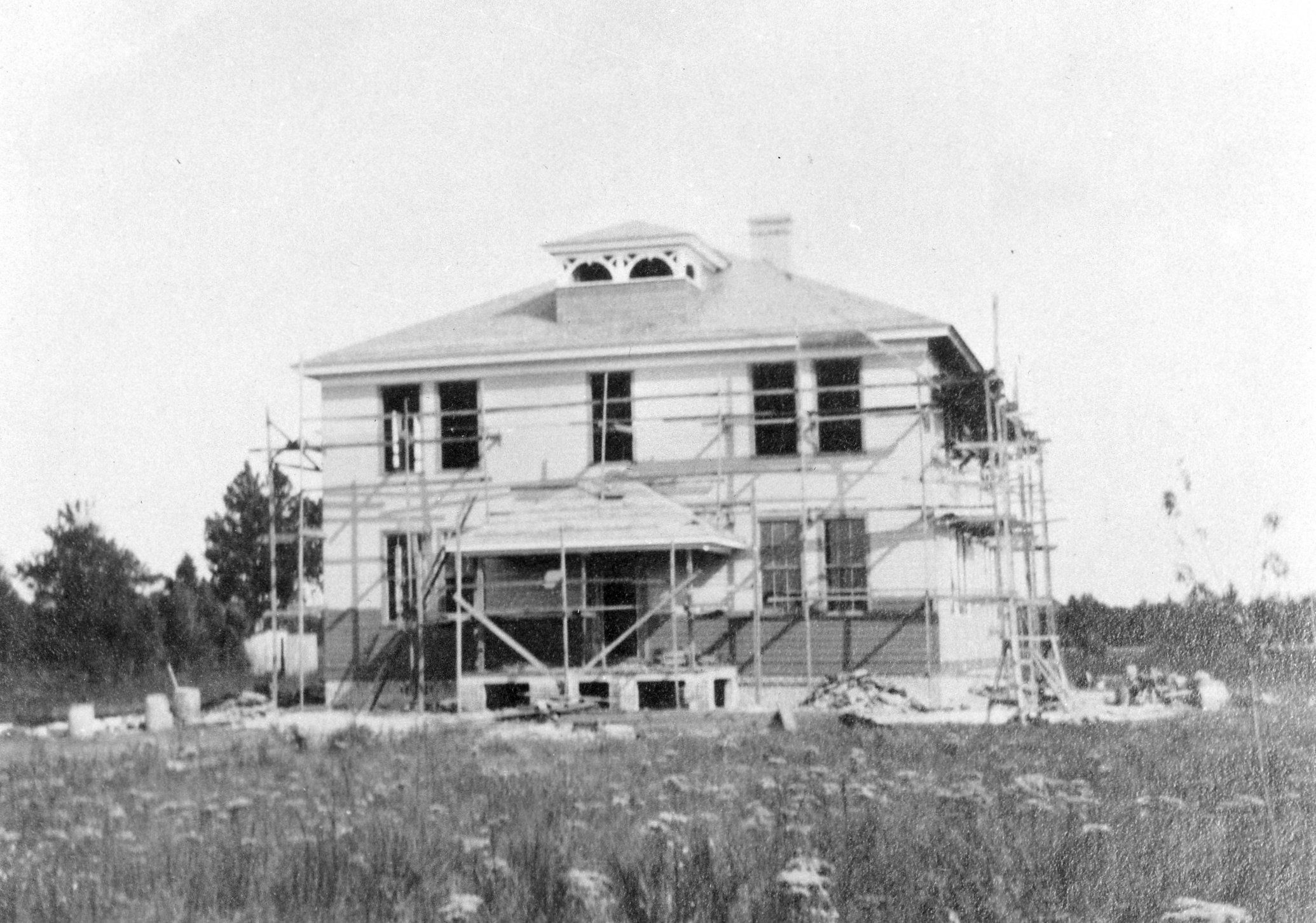 Postcard of Reedville school under construction