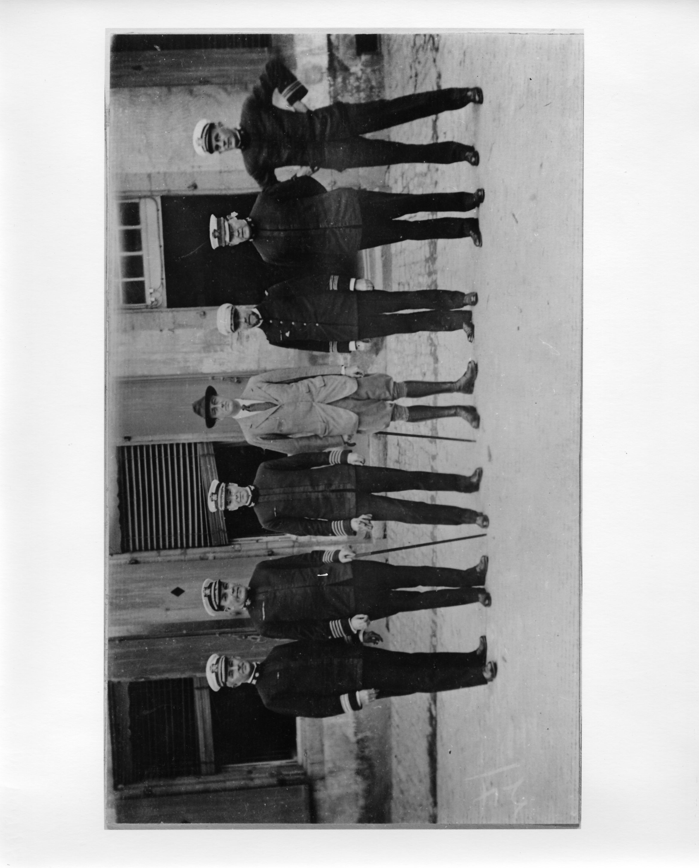 2 photos of Assistant Sec. of Navy F.D. Roosevelt visited base at Lorient; CAPT. Thomas P. Magruder commanding Squadron 4 Patrol Force At FDRC. The Squadron was made up of Menhaden Vessels converterd by the Navy to Patrol Vessels and Minesweepers.