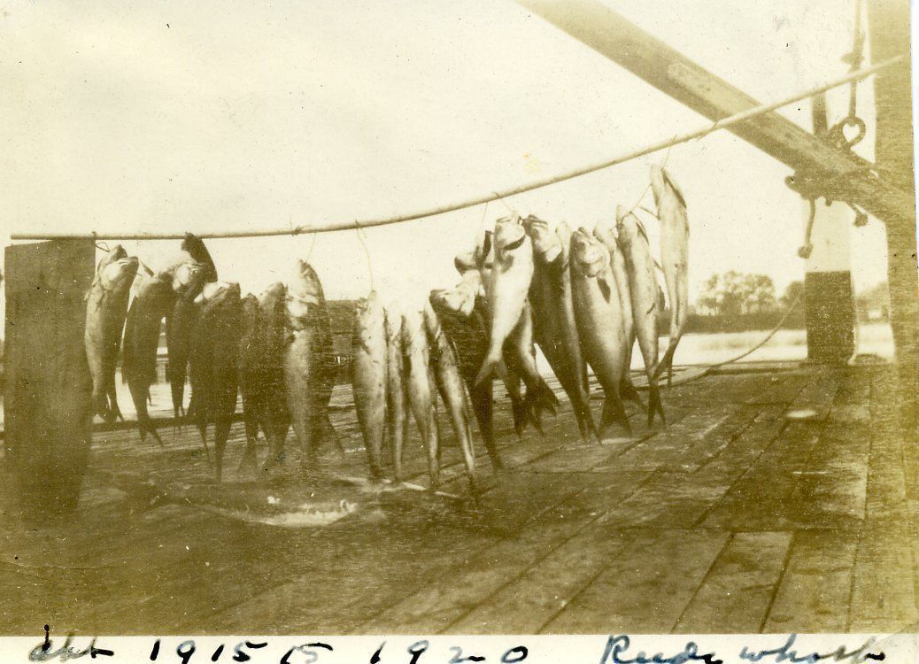 String of bluefish on the Reedville Wharf circa 1915
