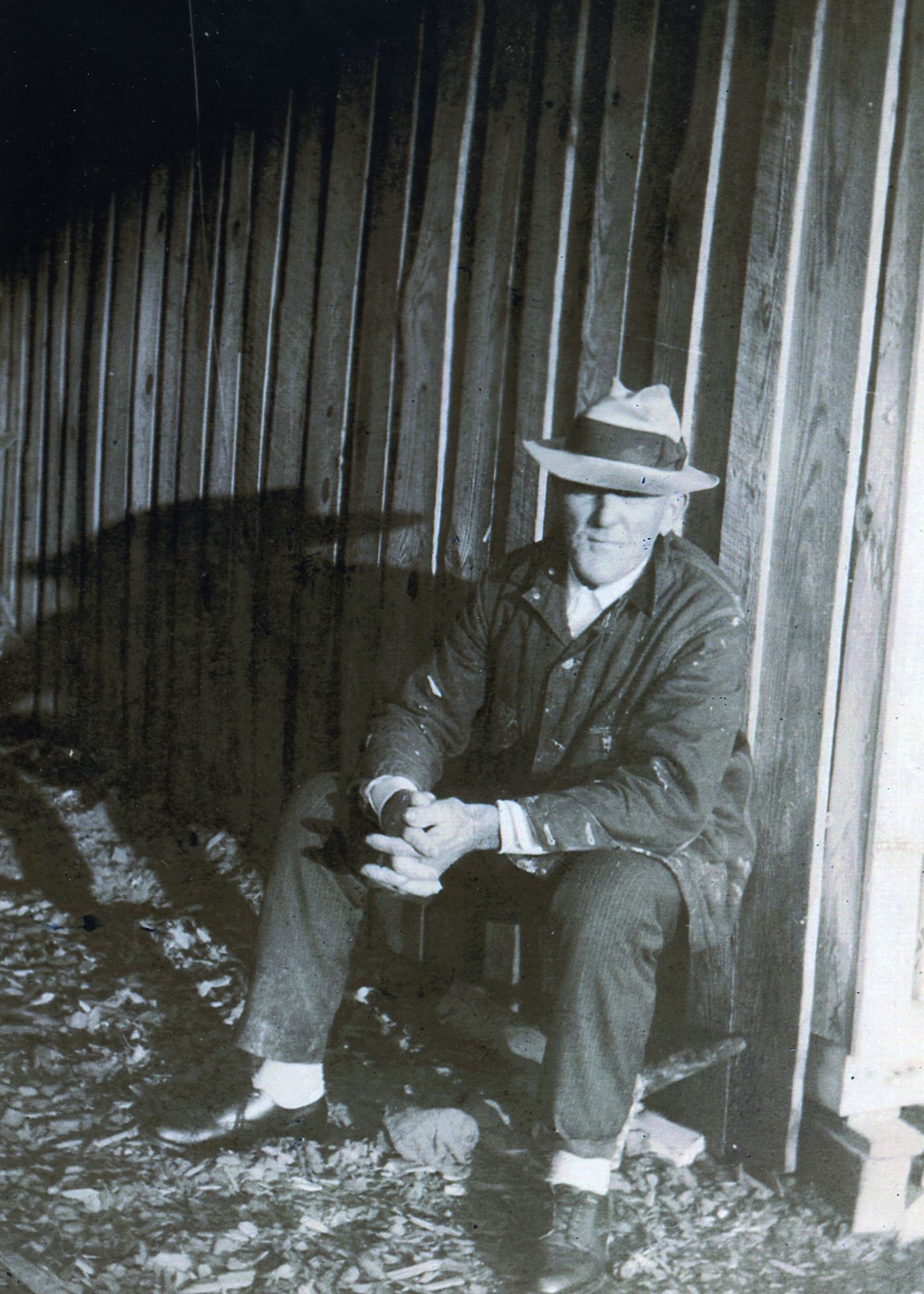 Boat builder Gilbert White, of White Stone sitting in front of his shed