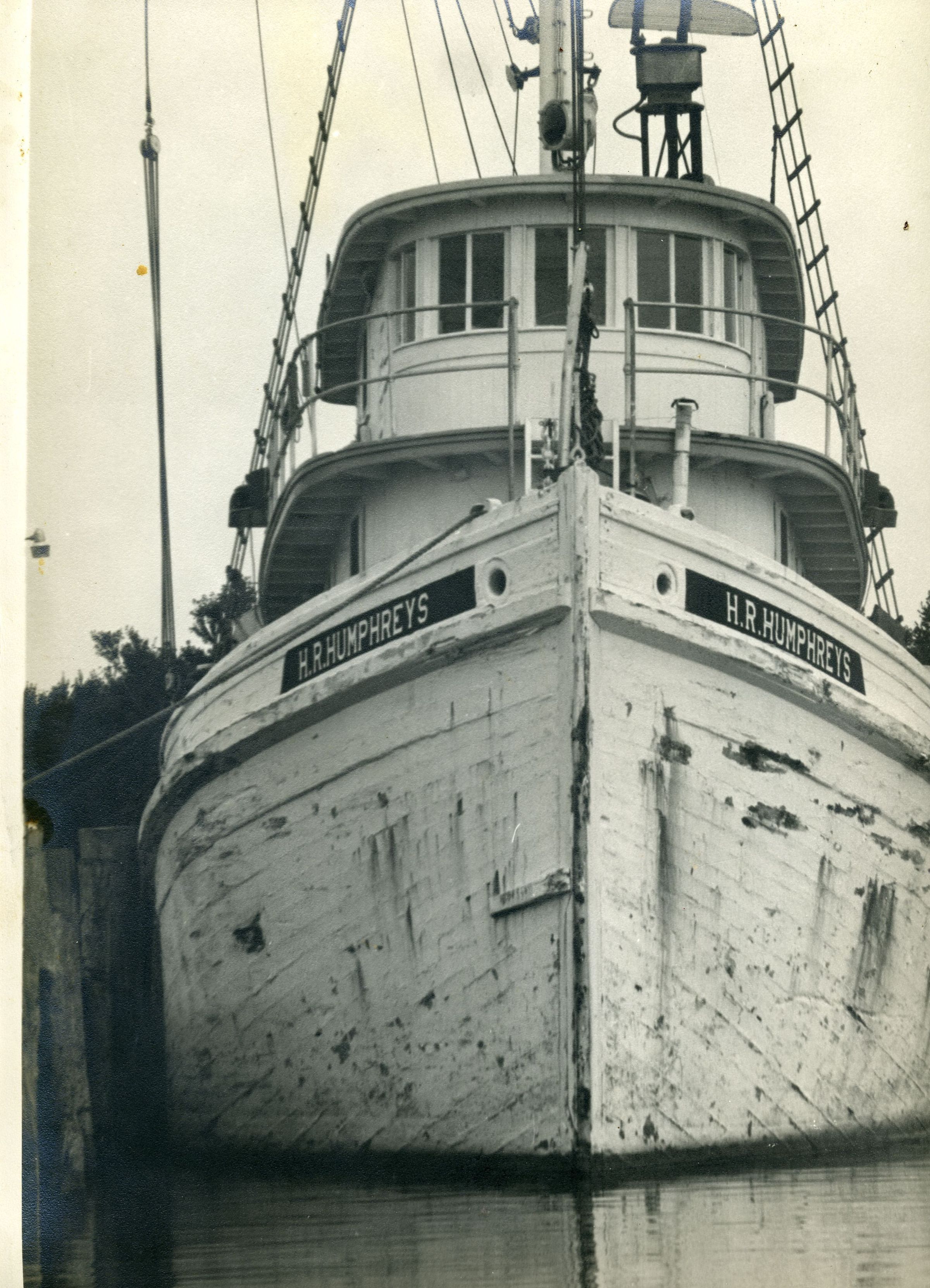 Photo of H.R. Humphreys, bow end of boat, taken 1965 Built by Humphreys Railway, Weems, VA, 1919