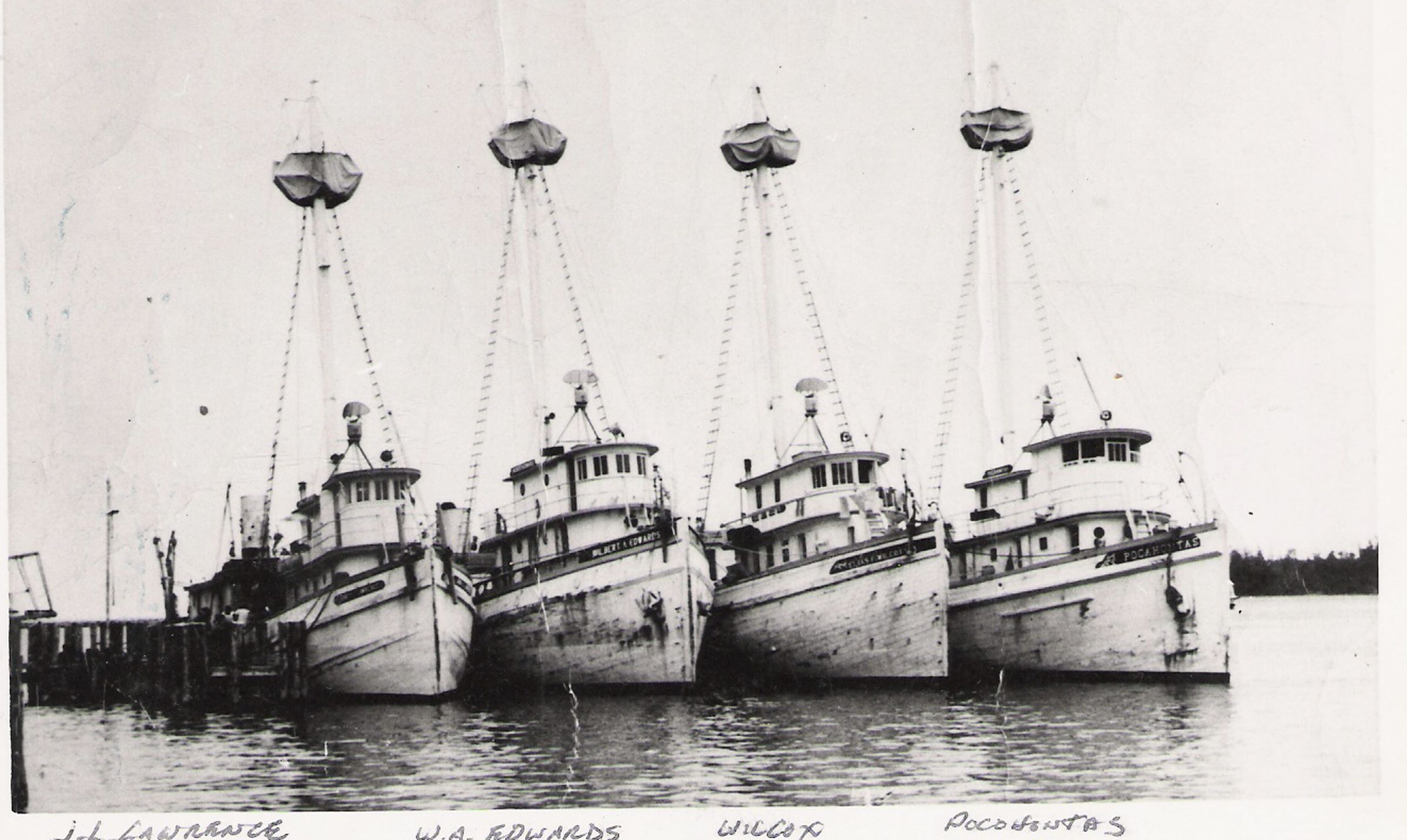 Built as the David W Burbage Philadelphia PA. Renamed Pocahontas and owned by Eubank Tankard Co Kilmarnock which was later purchased by J. Howard Smith & Co.) Leased by U.S. Navy 1943 and patrolled at Little Creek VA . Later owned by successor company Smith Meal Company.Collection