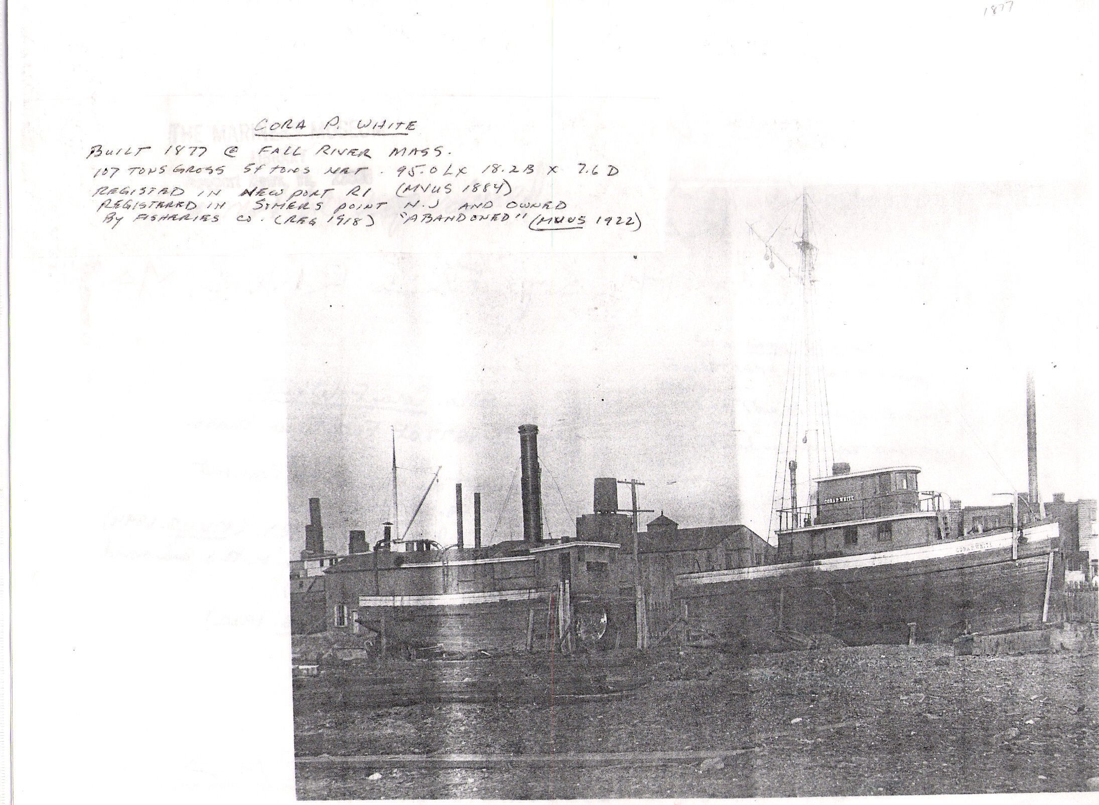 Fishing vessel Cora P. White built 1877 built Fall River MA