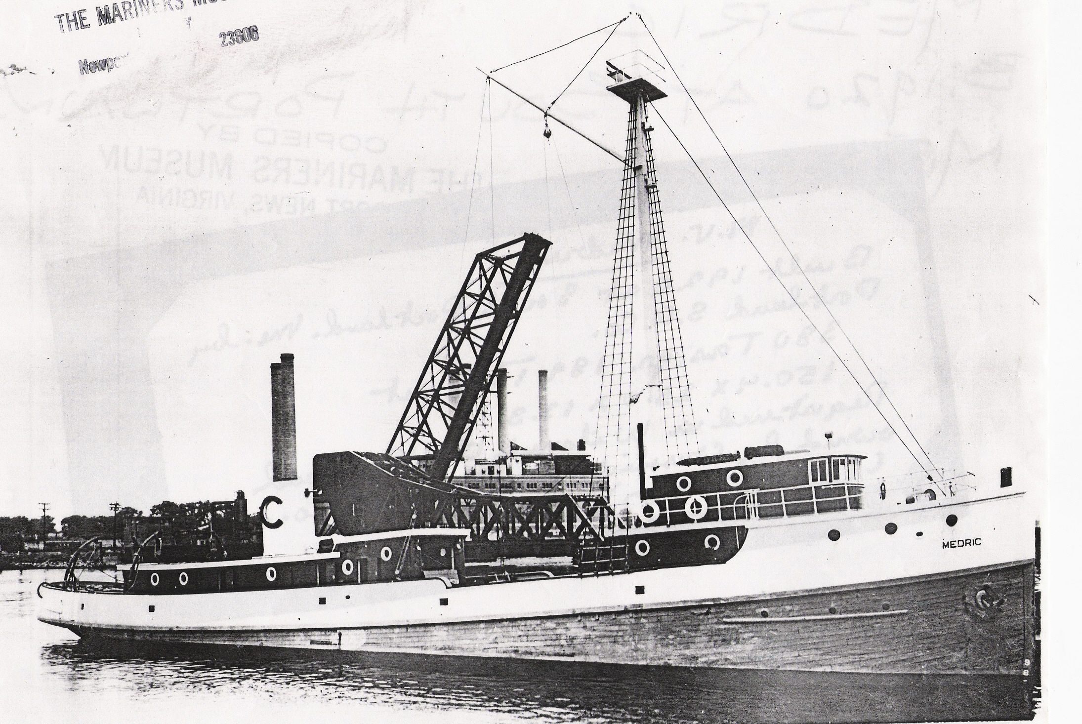 The "Medric" was built in 1920 in South Portland ME as a large steam ocean trawler; sister boat to the "Pelican" and "Seabird"