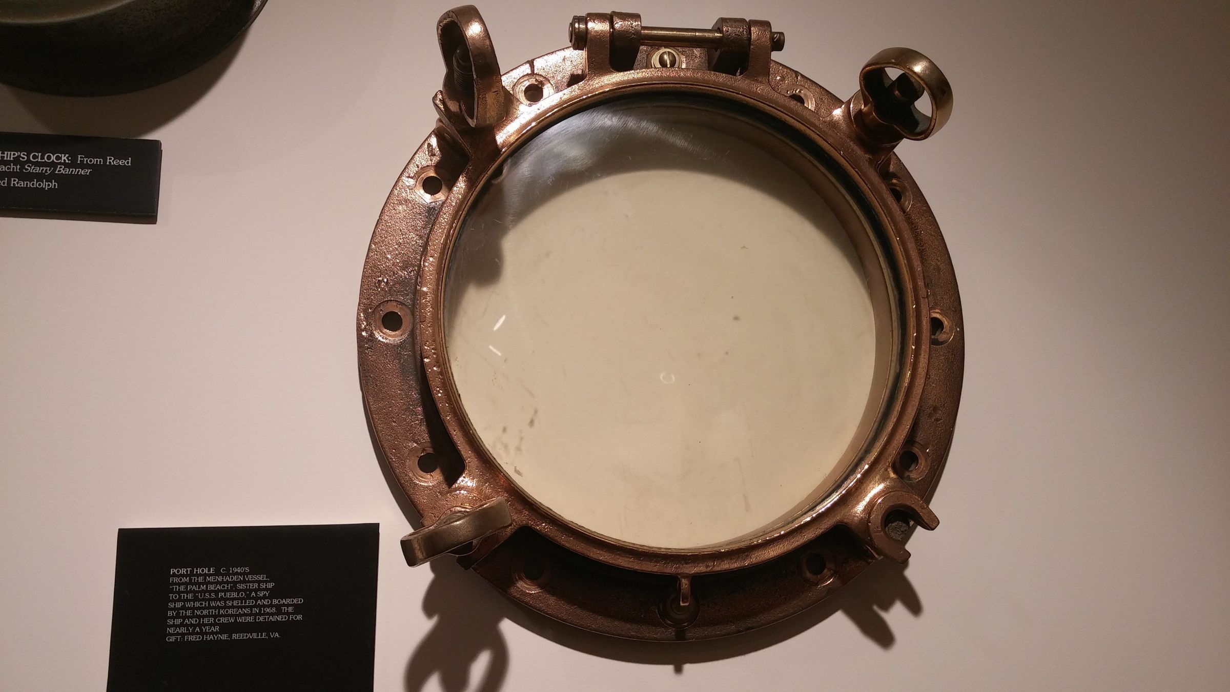 Brass Porthole--14" Diameter From the "Palm Beach," a spyship converted to menhaden fishing boat