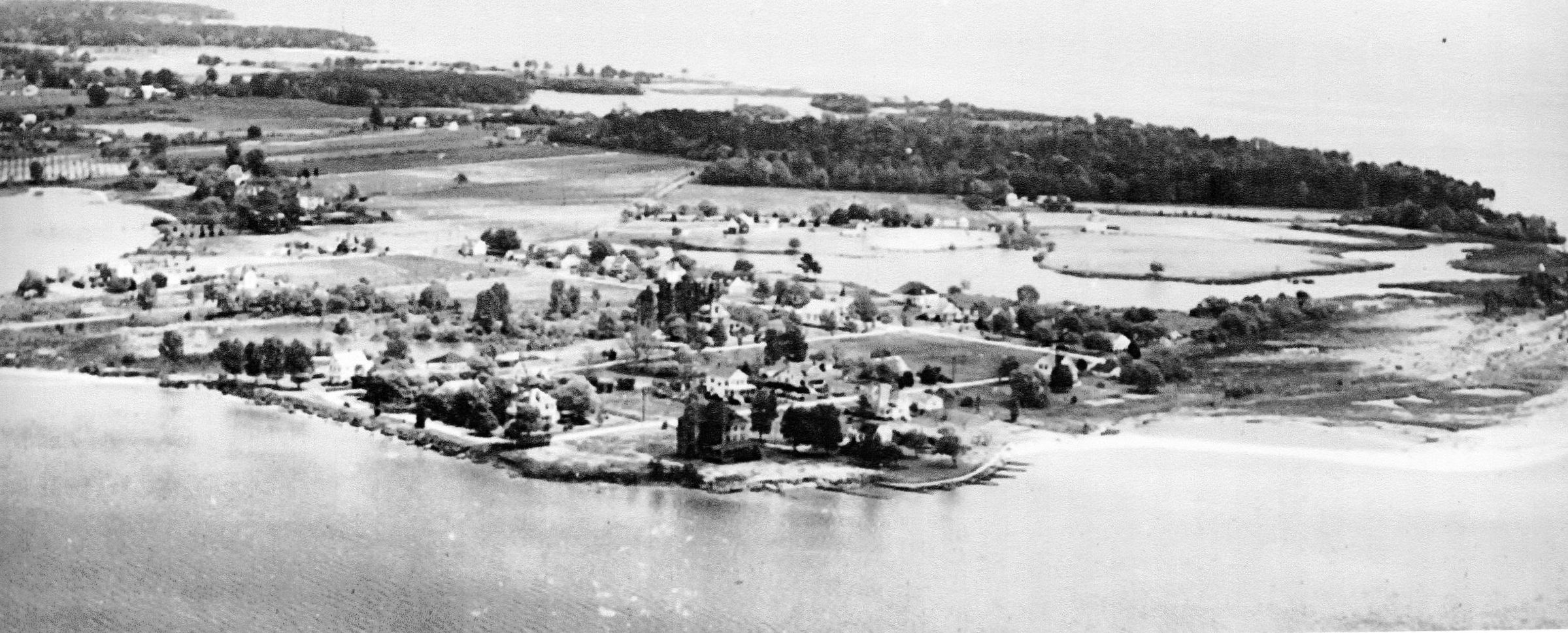 Airplane shot of Fleeton, perhaps when C.E. Davis factory used Navy planes to experiment with spotting fishCollection