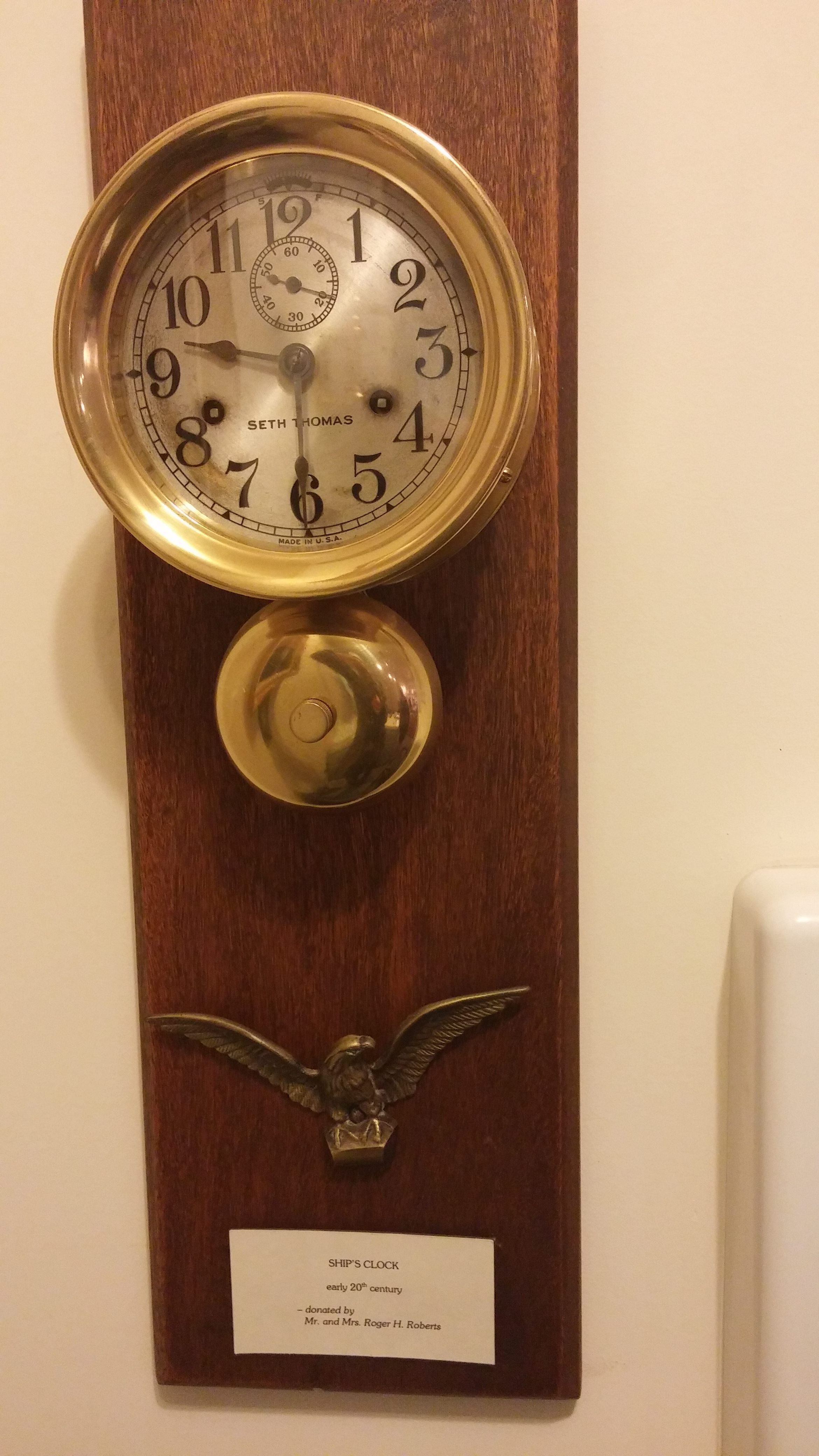 US Naval Vessel clock mounted with a striker bell; made by Seth Thomas in 1917; 10.5"x 7"x 3.5";