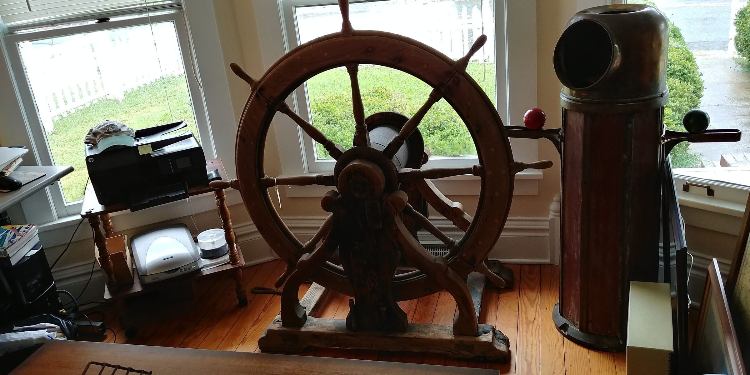 Ship's wheel from Menhaden Steamer (wheel and steering assembly)