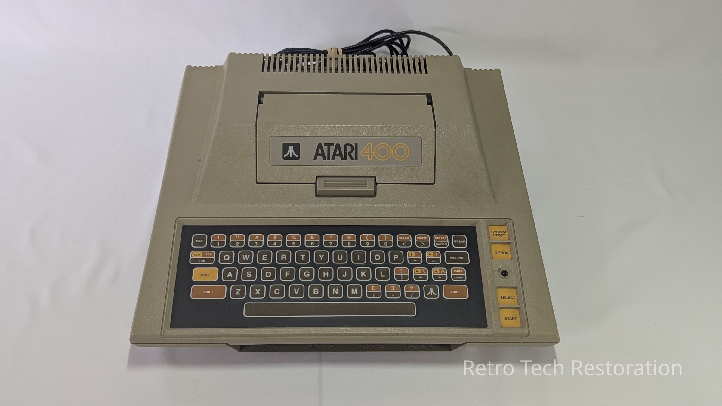 This Atari 400 was purchased from its original owner with a non-working keyboard and later restored to full functionality.
