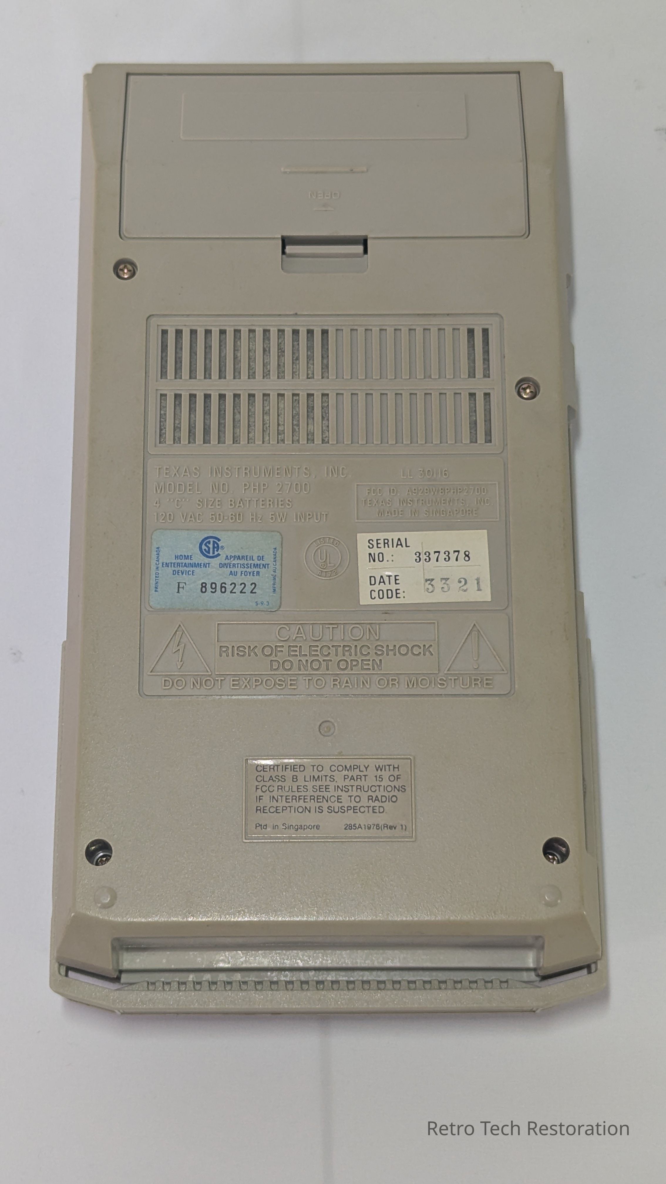 This was reportedly a rebranded GE tape recorder/player. Using a cassette tape for computer data storage was more popular in Europe than the United States, but was widely used in all markets before the cost of floppy disk storage became reasonable for the average consumer.Note Type