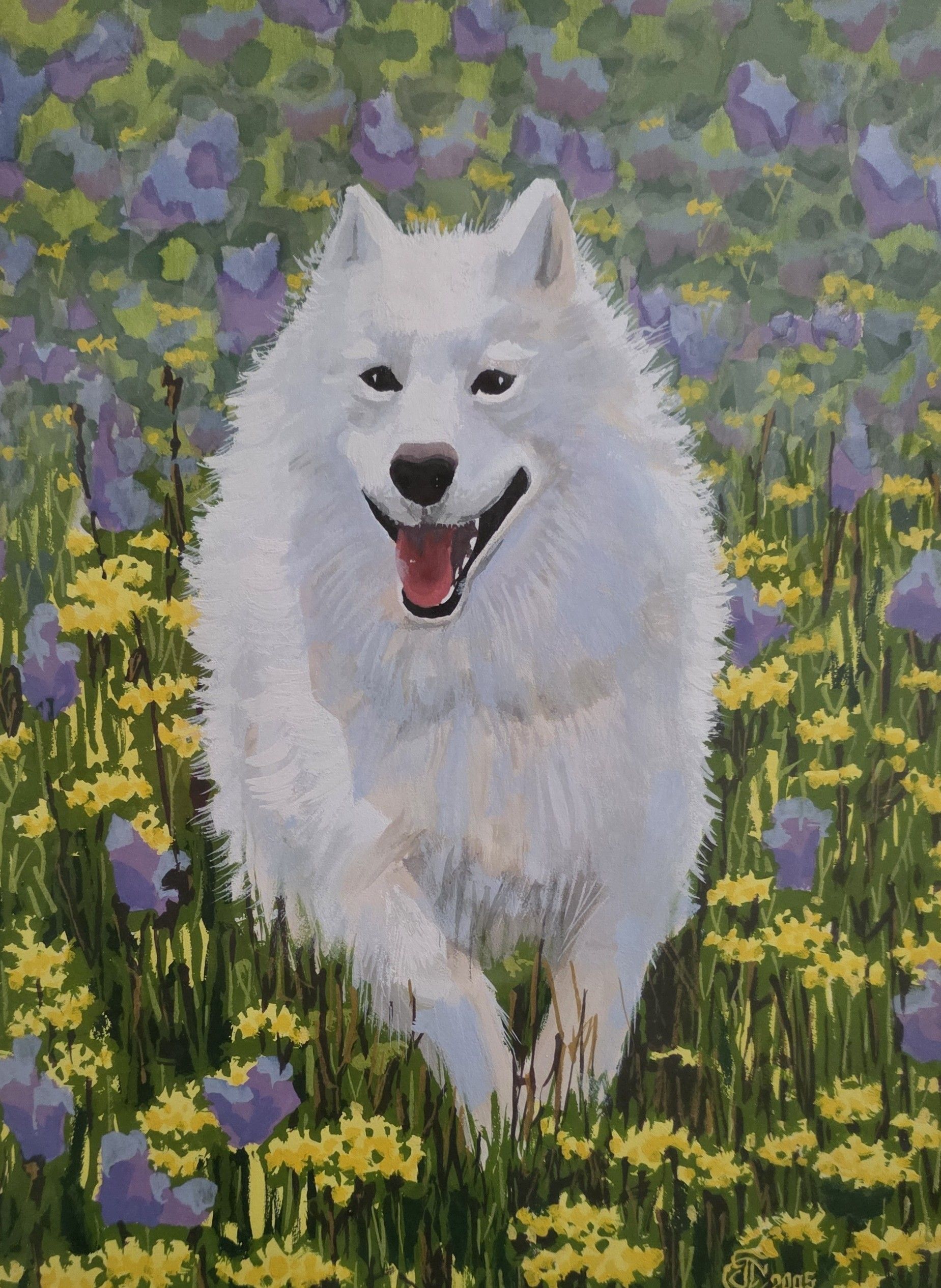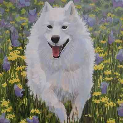 Art-Samoyed in Flower Patch