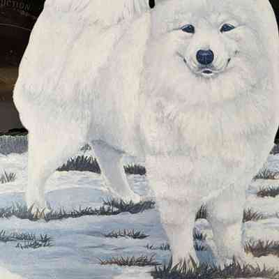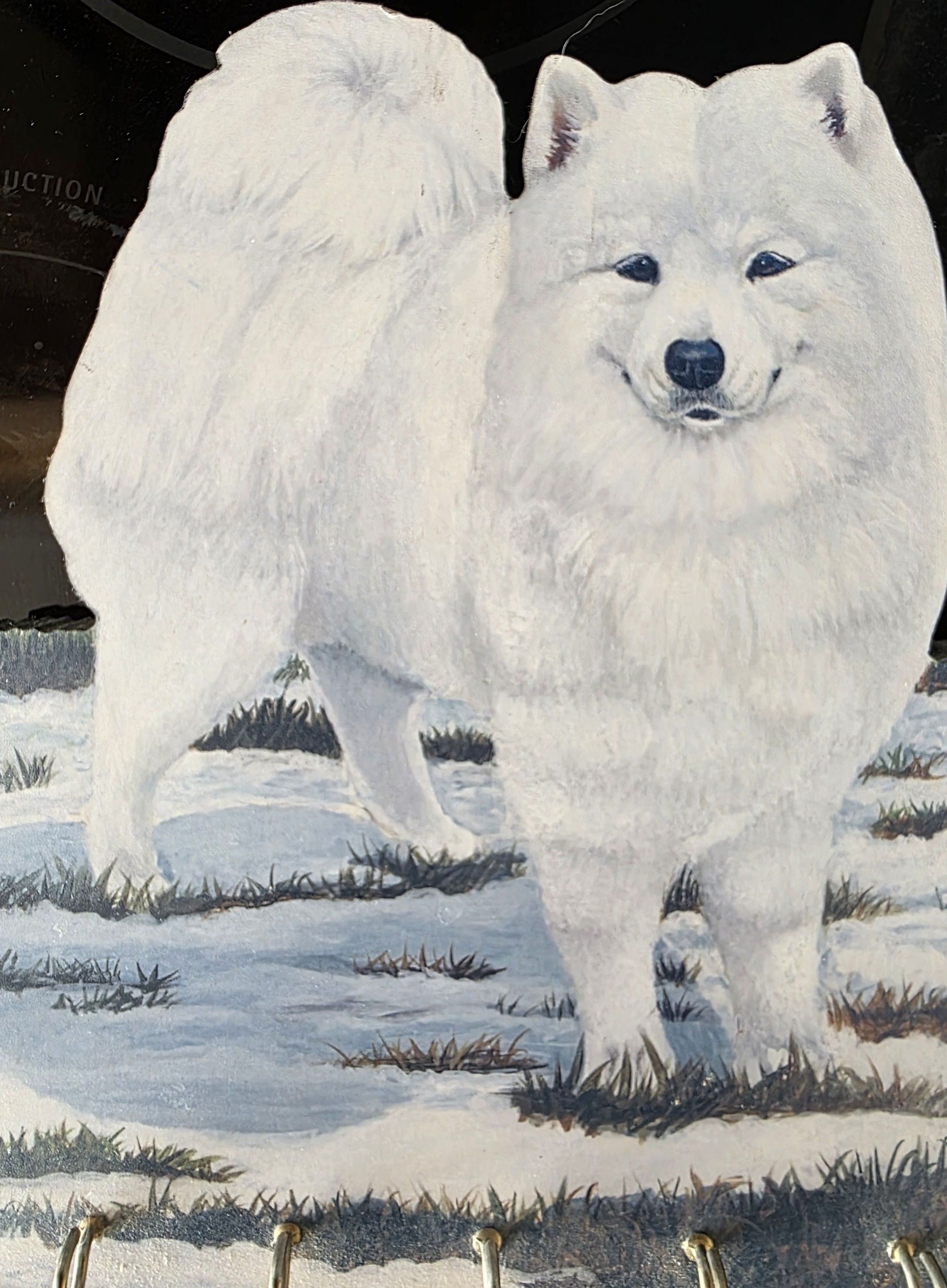 Art-Samoyed Painting with Hooks at Bottom for Keys