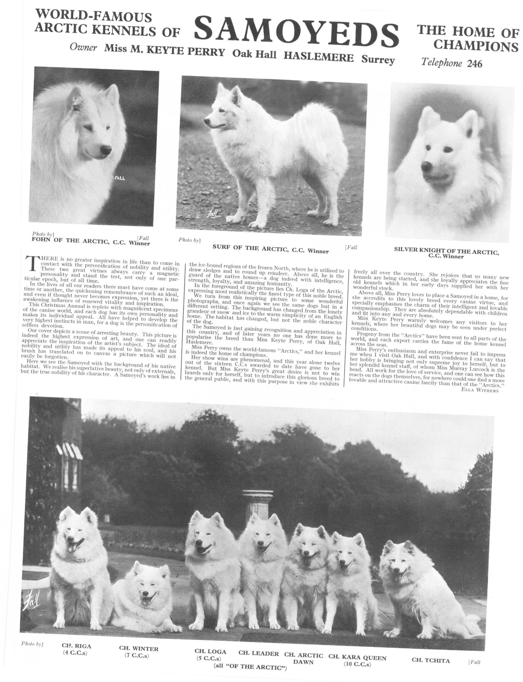 Kistner Book, Arctic Kennels, Miss Keyte-Perry, Fohn of the Arctic, Surf of the Arctic, Silver Knight of the Arctic, Ch. Riga, Ch. Winter, Ch. Loga, Ch. Leader, Ch. Arctic Dawn, Ch. Kara Queen, Ch. TchitaCollection