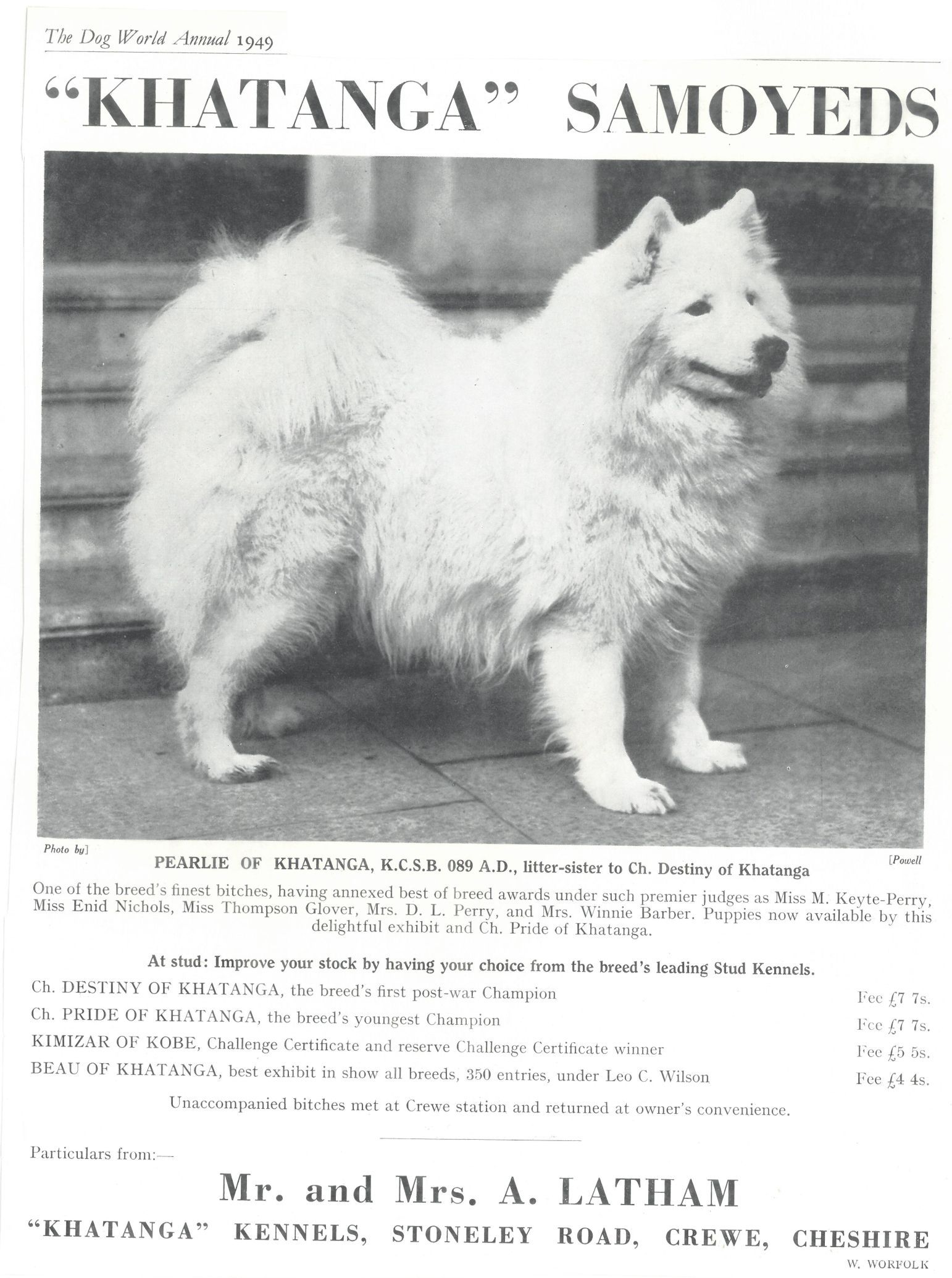 Kistner Book- Khatanga Samoyeds, Pearlie of Khatanga, Latham, Mr. and Mrs. A., Cheshire UKCollection