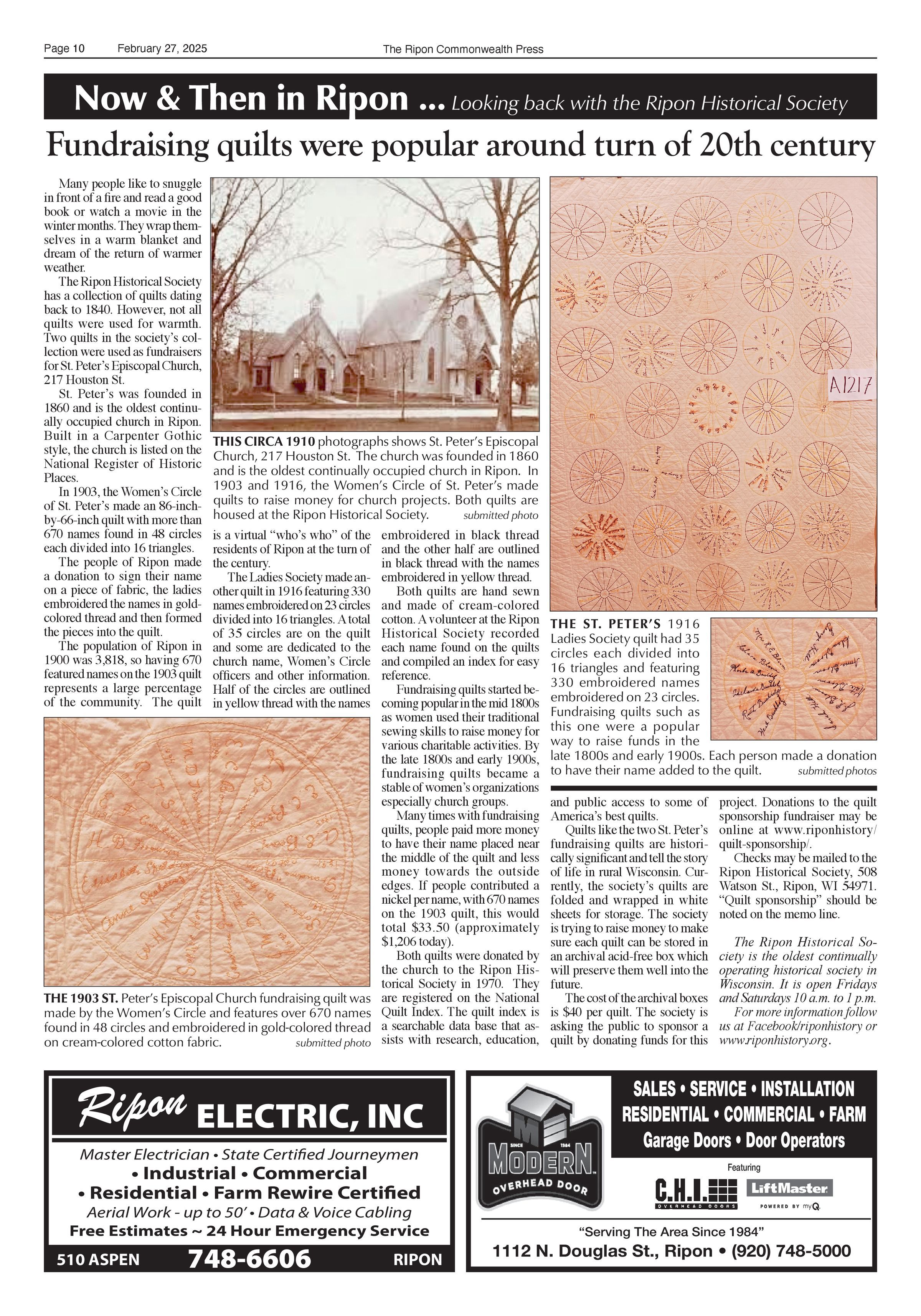 Article Title: Fundraising quilts were popular around turn of 20th century," February 27, 2025, Issue 9.