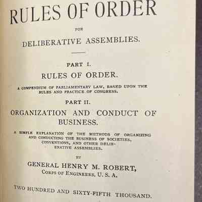 The 1901 "Pocket Manual of Rules of Order for Deliberative Assemblies" covers the basic rules of order for organizing and conducting meetings.